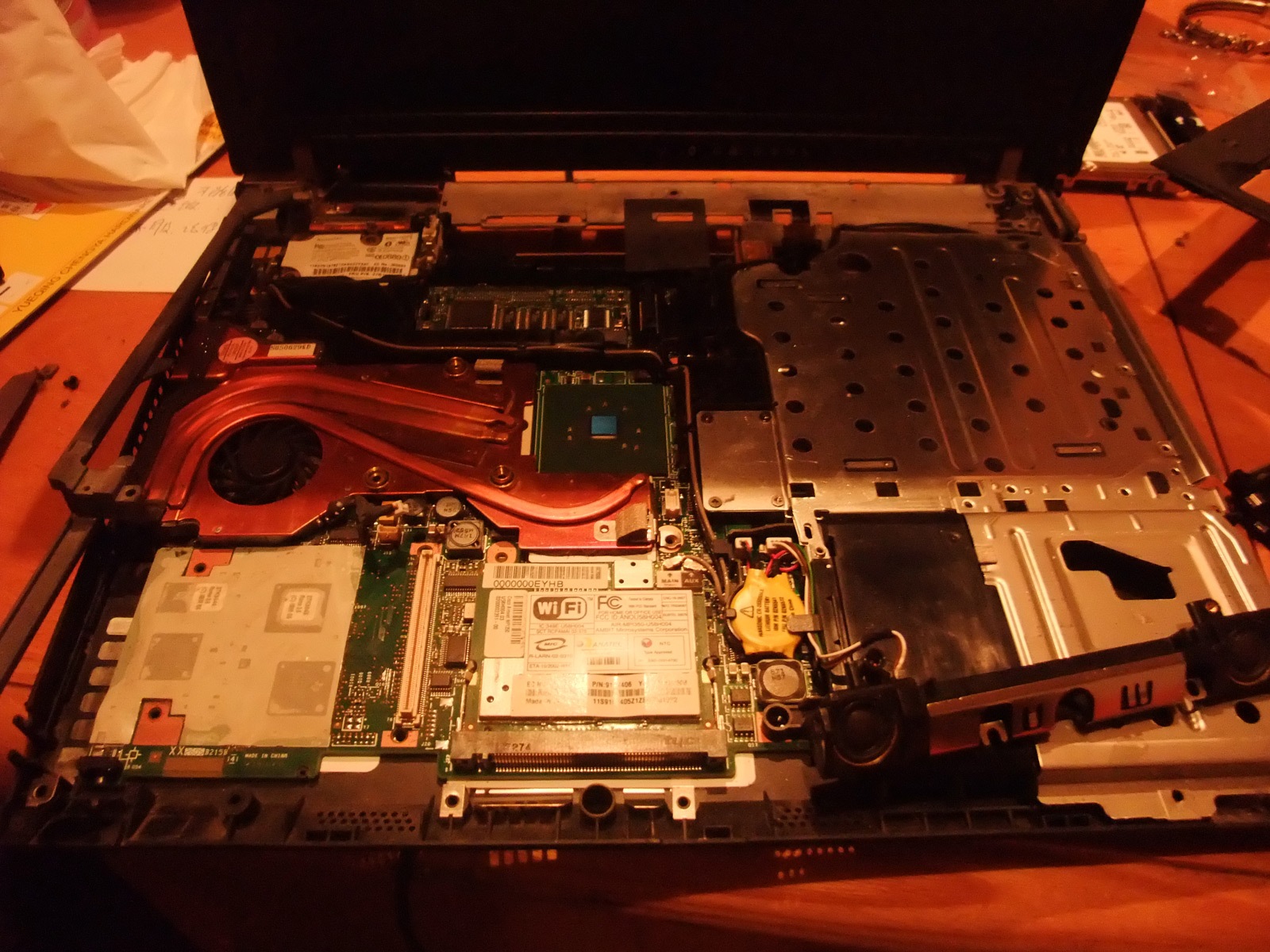 按照高手的图文攻略,亦步亦趋,终于都拆了,不由嘴角上扬,怀疑自己是不是很有机械天赋,以后失业了去搞维修亦未尝不可。不过习惯了藏污纳垢的台式机内部,打开笔记本内部一看,这卫生状况不是非常好吗?