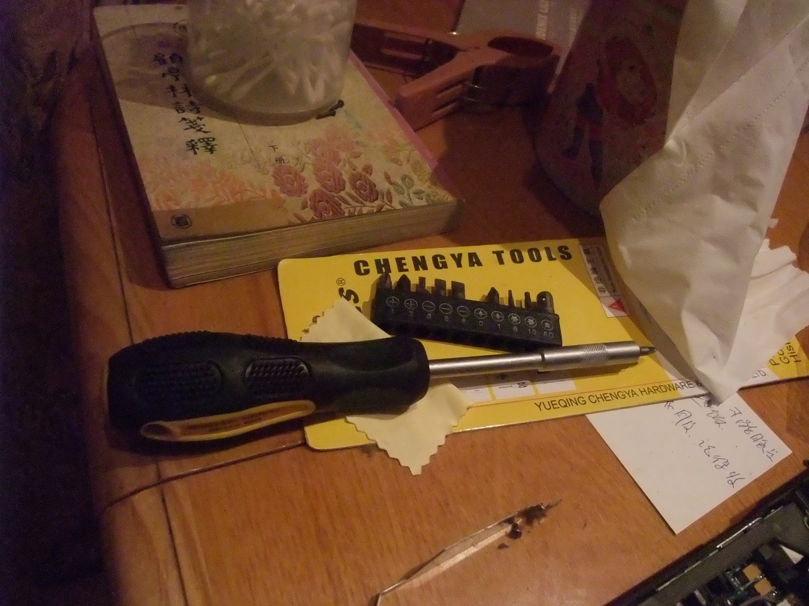 不过六百块真的太贵了,这台电脑顶了天也就值两千而已。 没奈何,只能自己硬着头皮操家伙动手了。作案工具: