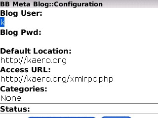 一个黑莓系统的第三方 Blog 客户端,功能比较简陋。但在 Wordpress 推出黑莓可用的官方 App 之前,作为替代品并无不可。