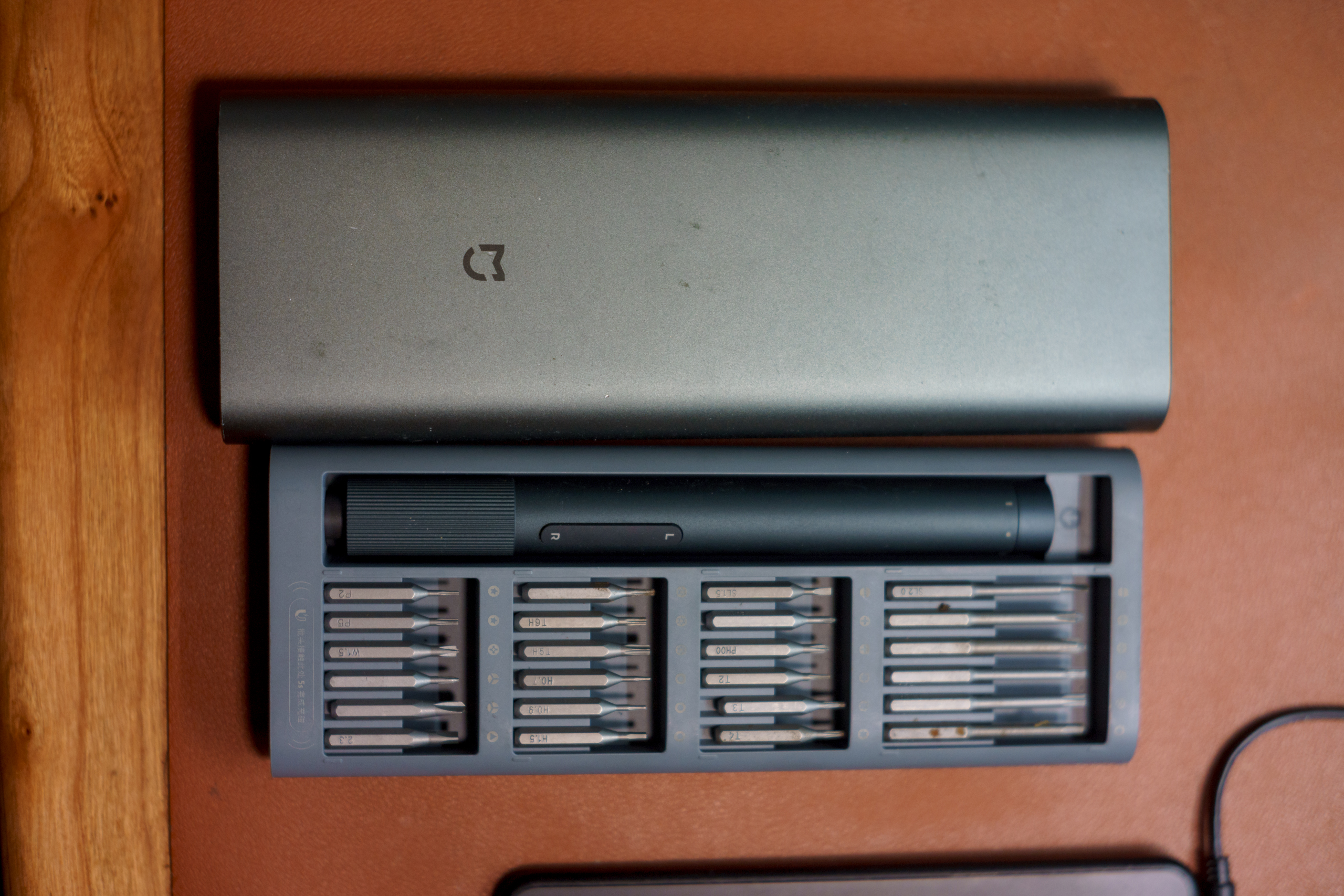 工具是一套米家电动精修螺丝刀,各种小型螺口一应俱全,尝试了一下,用的头子是 PH000。镜头内几个螺丝型号一致,中途无需更换。