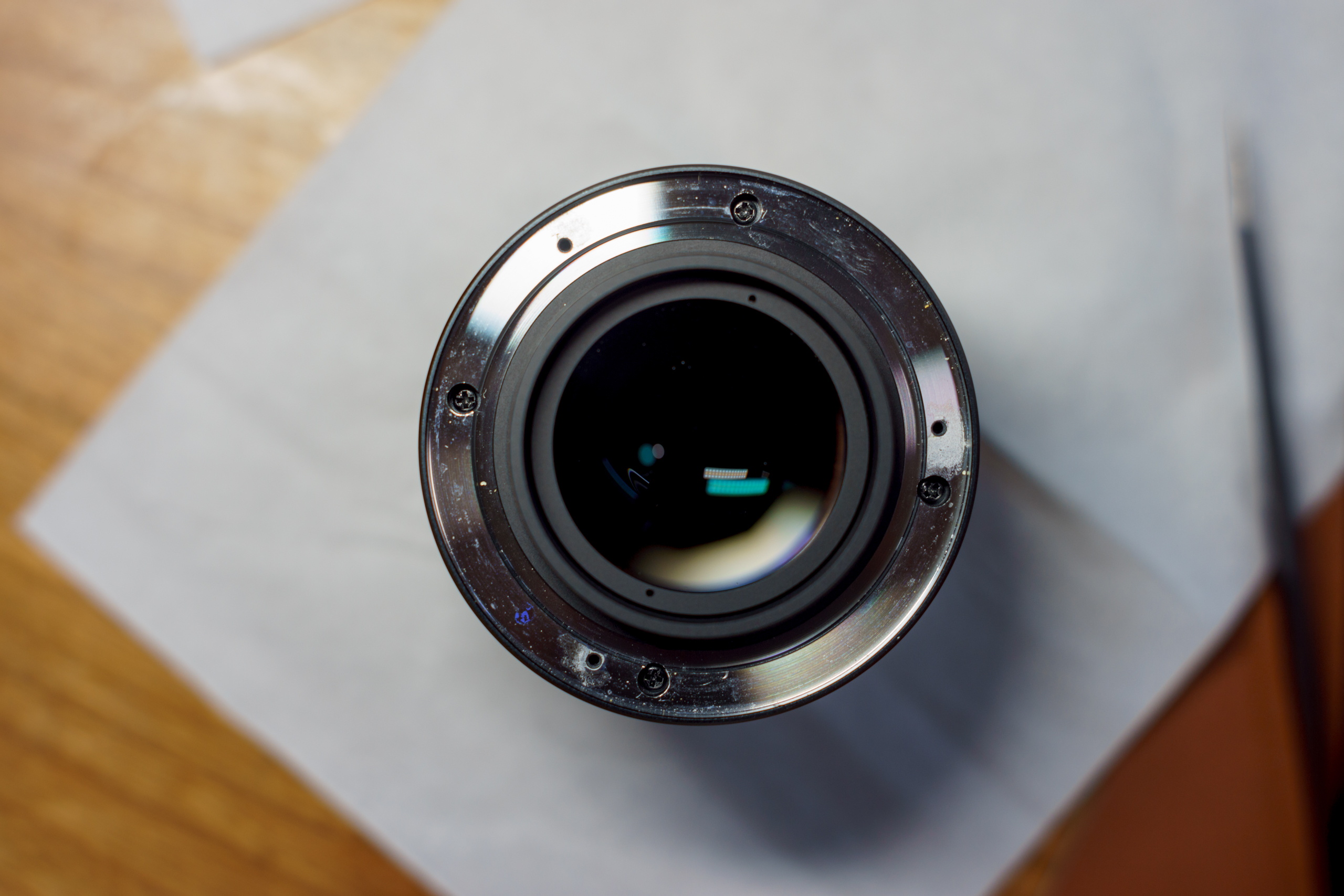 用螺丝刀一拧,果然就是这三颗螺丝松了,将其一一拧紧之后再转动光圈环,光圈环恢复了它应有的紧致手感——然后一丝愤懑涌入喉头,what the fuck……居然如此简单?