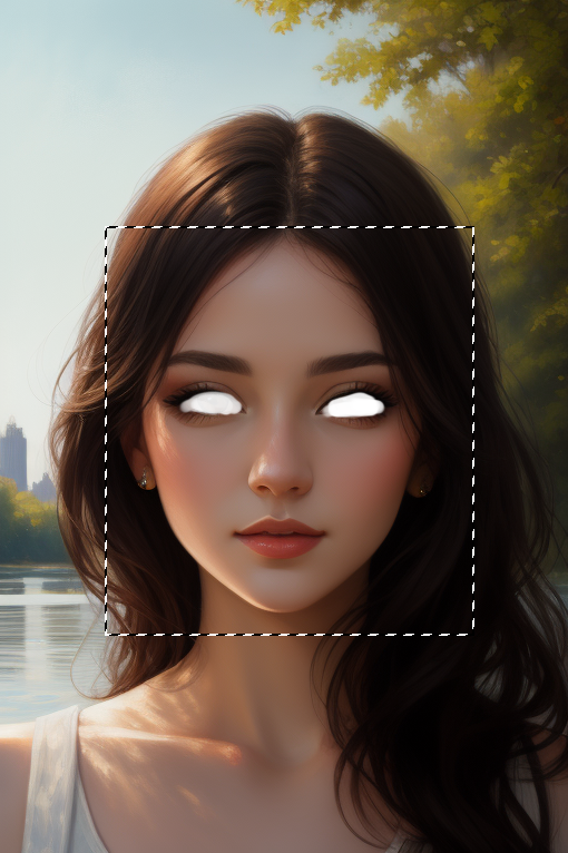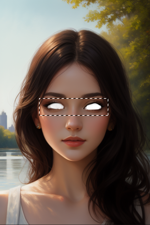 我们从生成的结果中选了一张比较满意的,但希望把眼睛换成绿色。试着用白色画笔涂抹眼睛,作为 Inpaint 蒙版: