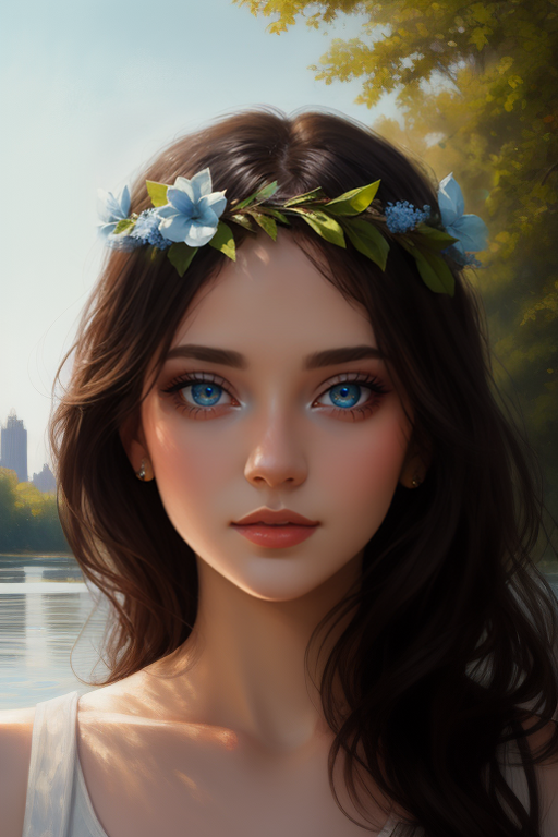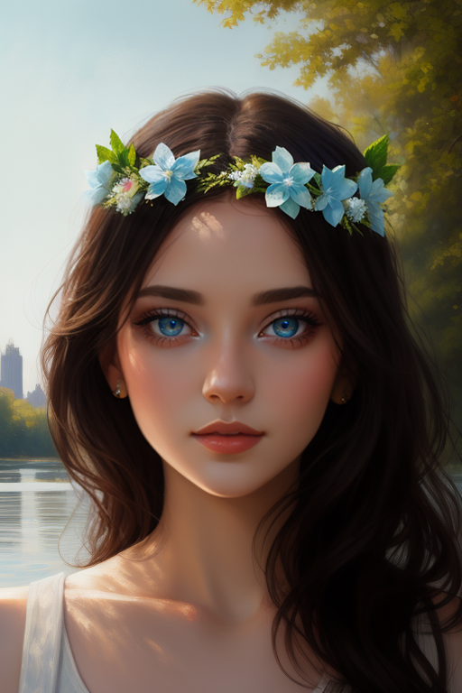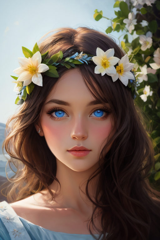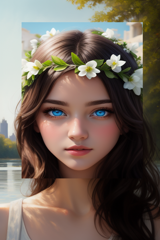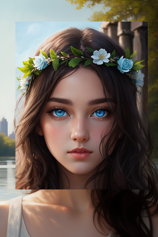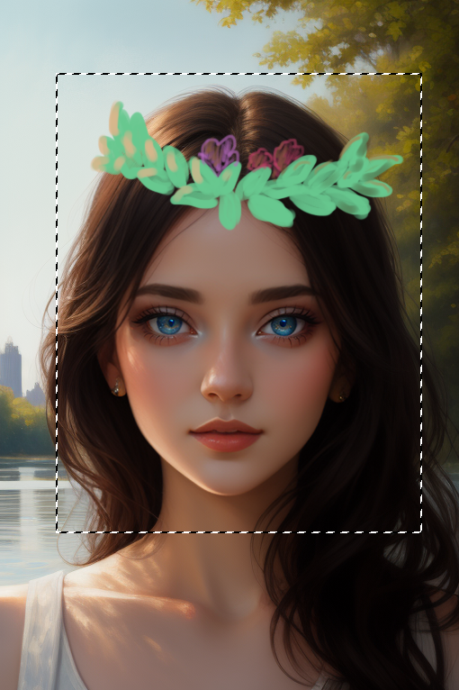 涂鸦重绘也是非常普遍的使用场景。比如我想给这位已经换上蓝色美瞳的女同学戴上一顶希腊式的花冠,通过我高妙的画技,得到这样的结果: