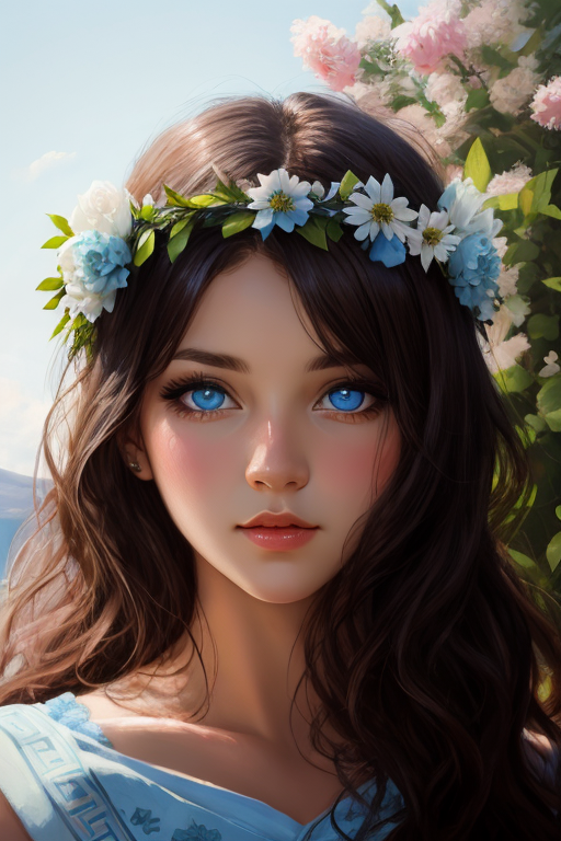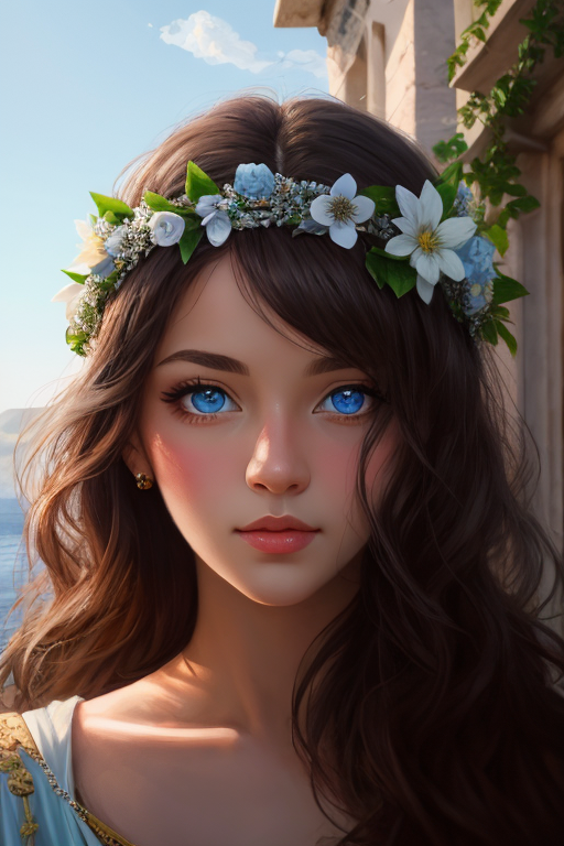 在 Prompts 增加花冠的描述词:greek flower crown, greek wreath,选中头部,看看图生图能得到怎样的结果: