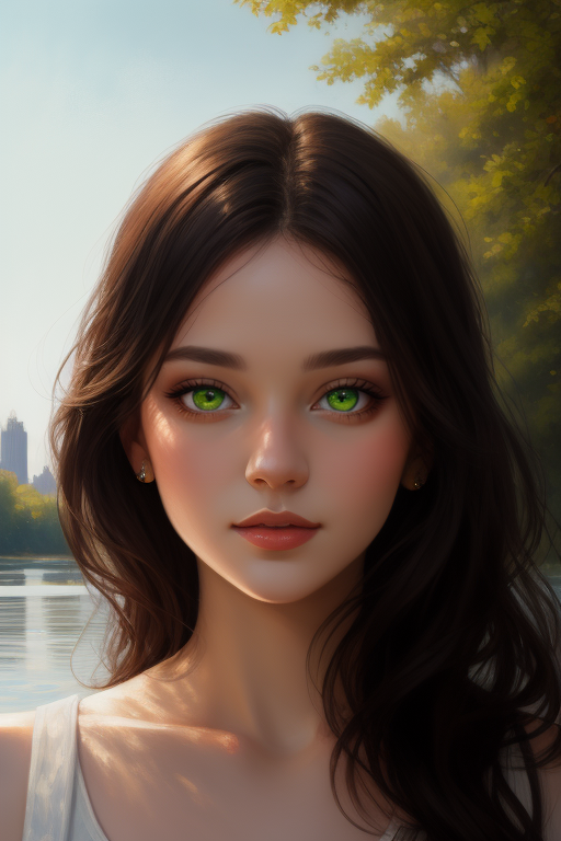 此时维持原 Prompts 不变,选中整张图片,在原来的 Prompts 基础上增加眼睛的描述:green eyes, light green pupils, high detailed eyes,绘图模式切换至 Inpaint,点击 Generate Inpaint,五选一之后得到:
