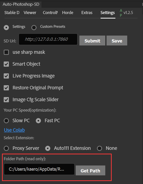 Web UI 生成的任何图片都可以在 Outputs 文件夹里面找到,而 SD4PS 调用的虽然也是 Stable Diffusion,但它生成的图片却不在 Outputs 文件夹里。如果跑了图却没有另外保存,事后再去找,难免会一时摸不着头绪。