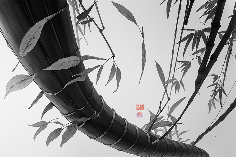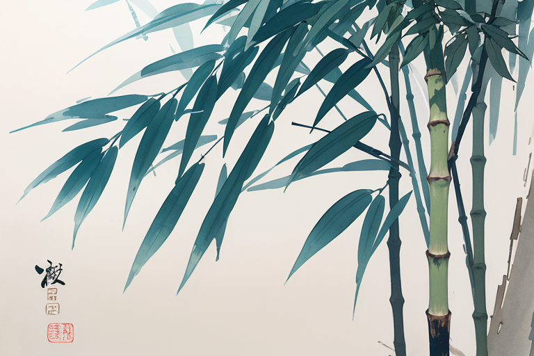 我们先按照上面的 prompts 来尝试一下,把女孩主题换成我们想画的竹子: