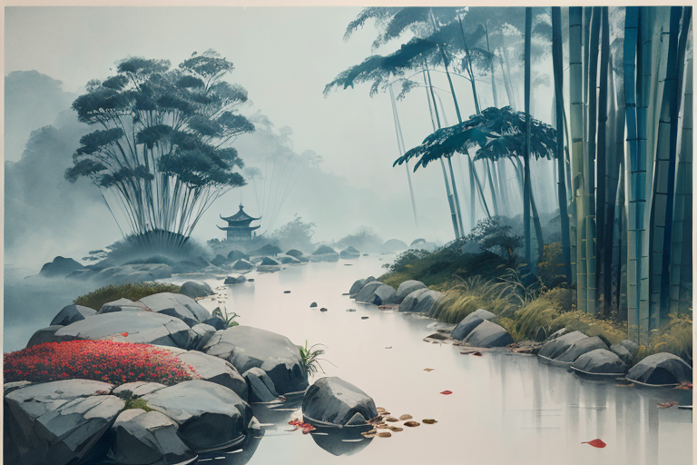 最近的项目与传统文化相关,主题又含有竹子元素,所以就想着如何用 Stable Diffusion 来输出合适的素材。作为传统的梅兰竹菊四君子之一,竹一直都是文人画里非常重要的元素,找一些相关的素材并不难,不过外面找的毕竟不如自己炼制来得好玩。