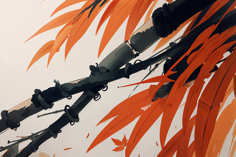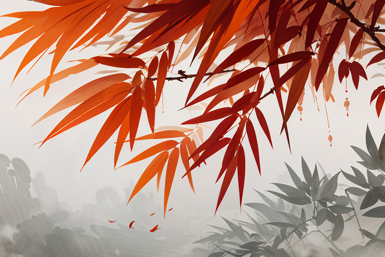 突然想起东坡的朱竹,又尝试了一下,结果怎么说呢?有点怪怪的,因为红色的竹子不符合常识,所以AI 很容易偏离到枫叶主题: