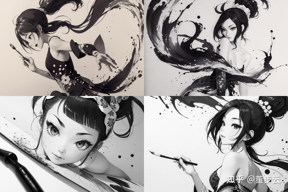 参考知乎上的 Ai 绘画有哪些有趣的 prompt? - 董步云的回答,水墨风格的关键词如下,顺便分解一下词组: