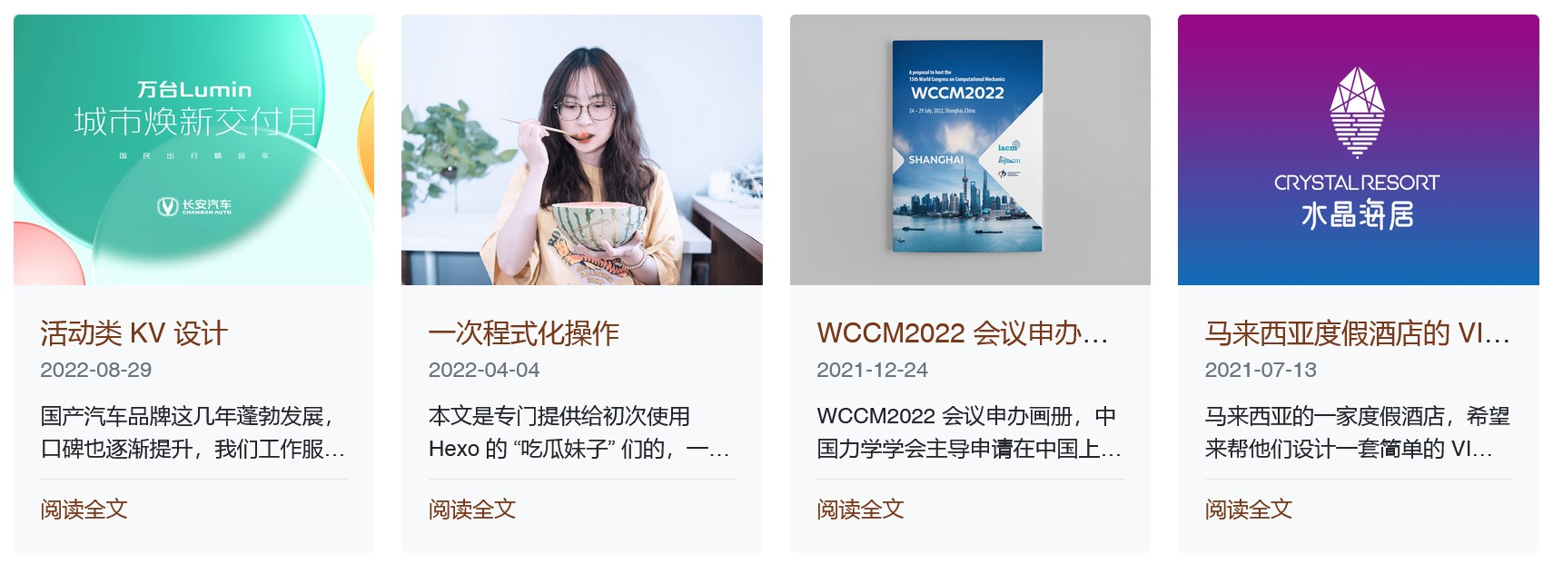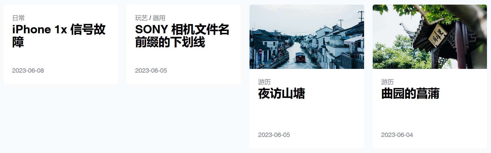 Acorn 默认的图文列表中规中矩,效果尚可,但标题和正文会按照限定的行数自动裁切,我不太喜欢这样把文字切得细碎的处理方式,主题都交代不完整,所以就做了改动:把正文去掉,保留标题,标题最多容纳三行文字,除了特别长的英文标题,基本上都能正常显示。