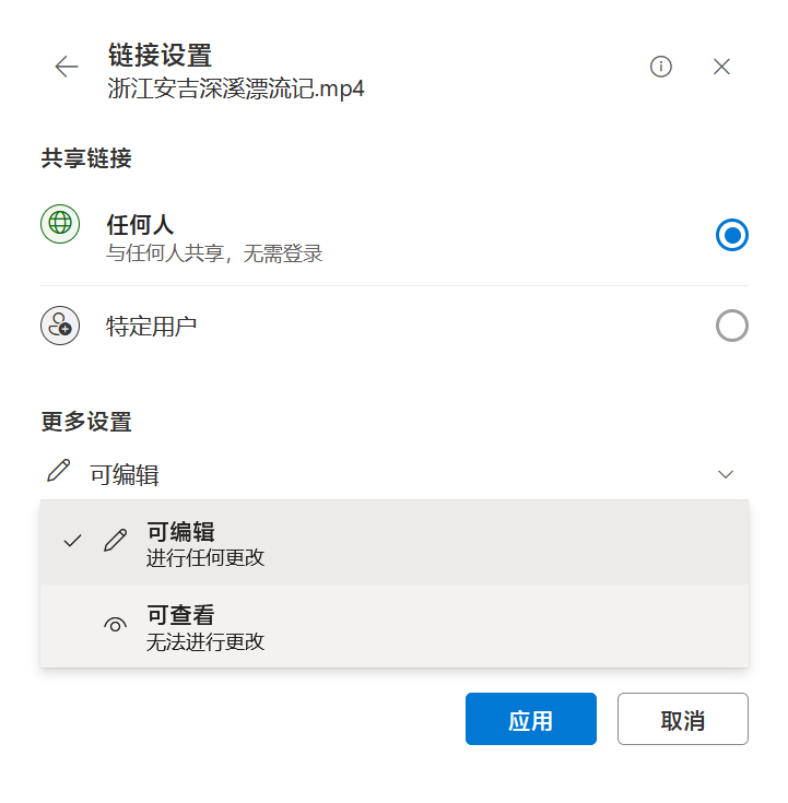 点击进入权限编辑,将「可编辑」改为「可查看」,点击确定,即可得到安全的链接: