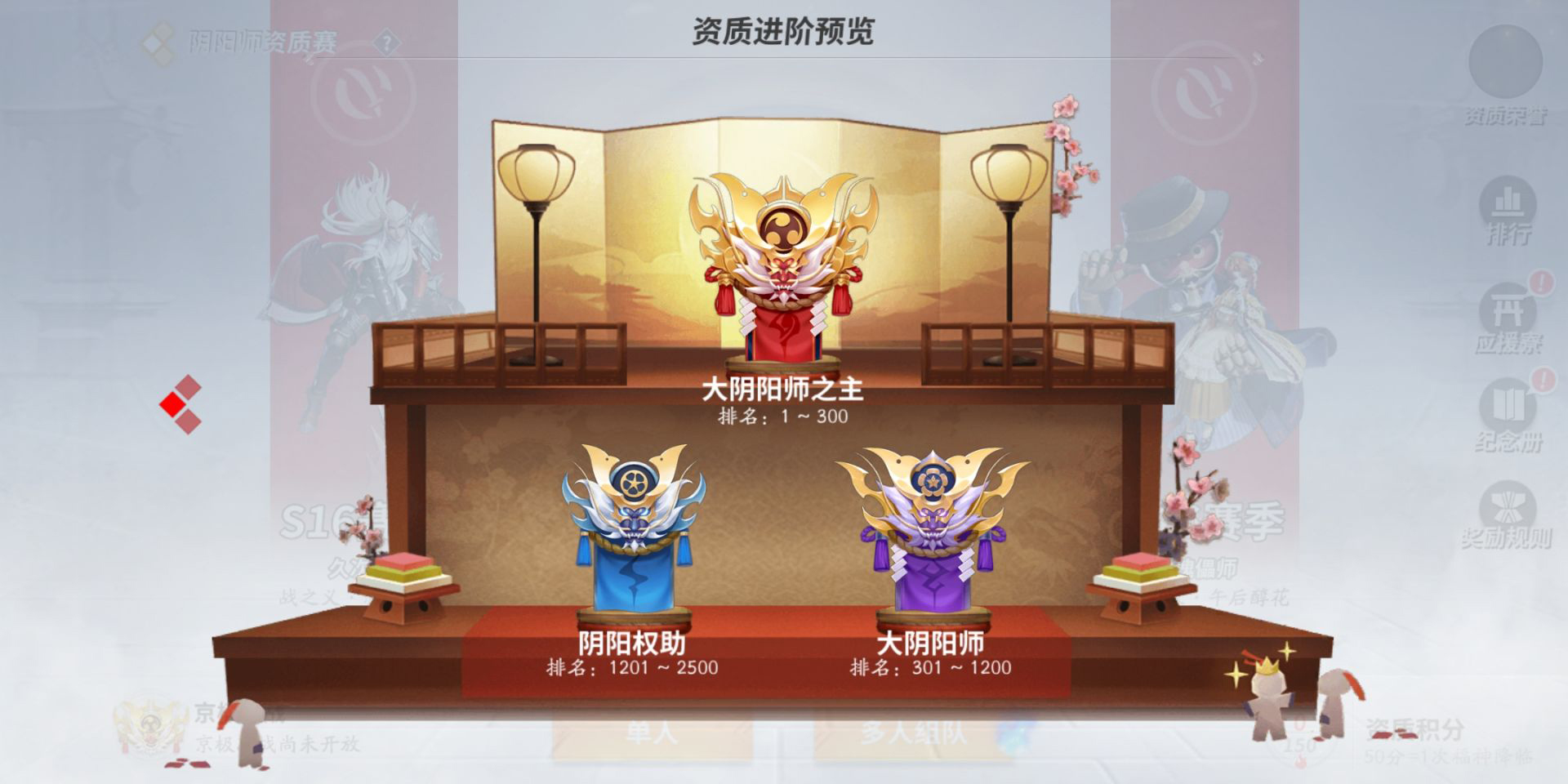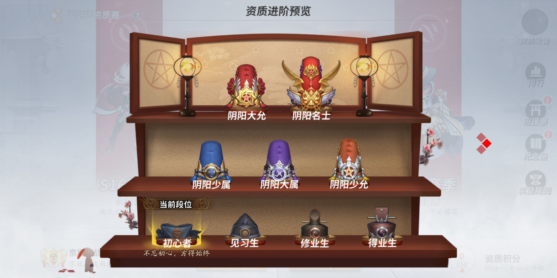 决战平安京的段位图标,完全继承了阴阳师的设定