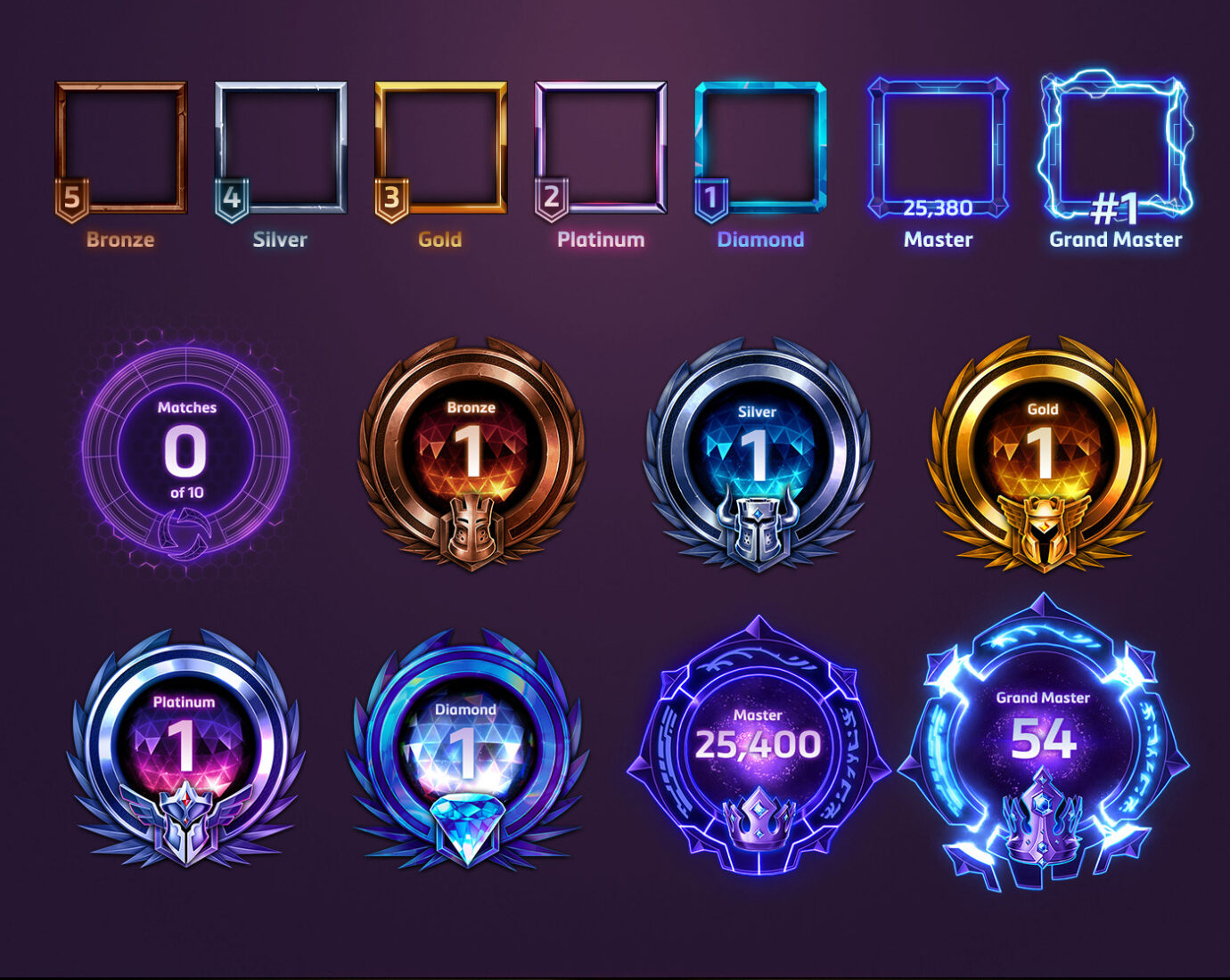 - 段位图标,有很多游戏没有段位的概念,但普遍存在的等级图标和成就图标也可以参考;
