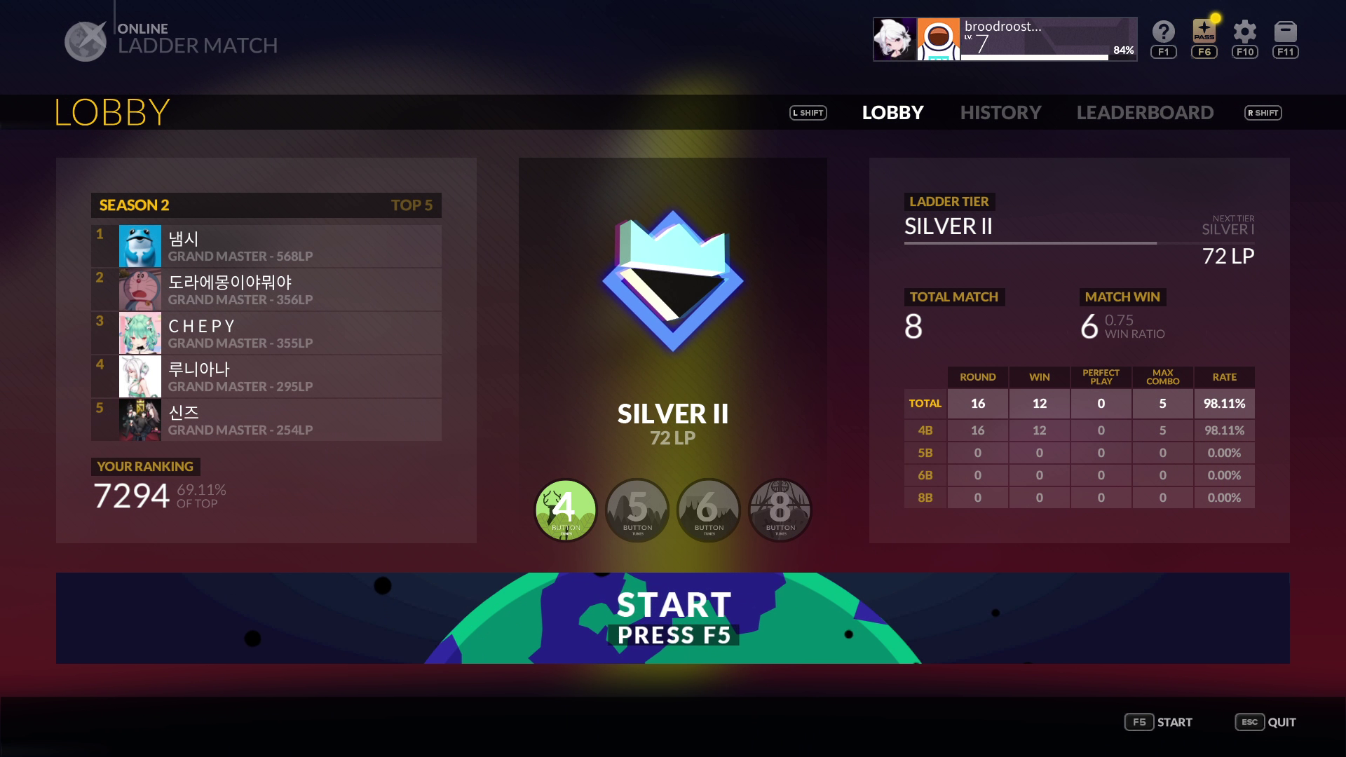 虽然一款音游很难和排位赛、段位这些应该很硬核的电竞概念关联起来,但 DJMax Respect V 确实也引入了排位系统和段位。并且,我真是太喜欢它的这套设计了,色彩大胆,造型率性,动作也大多很张扬,很容易联想倒 Triggle 社的风格。
