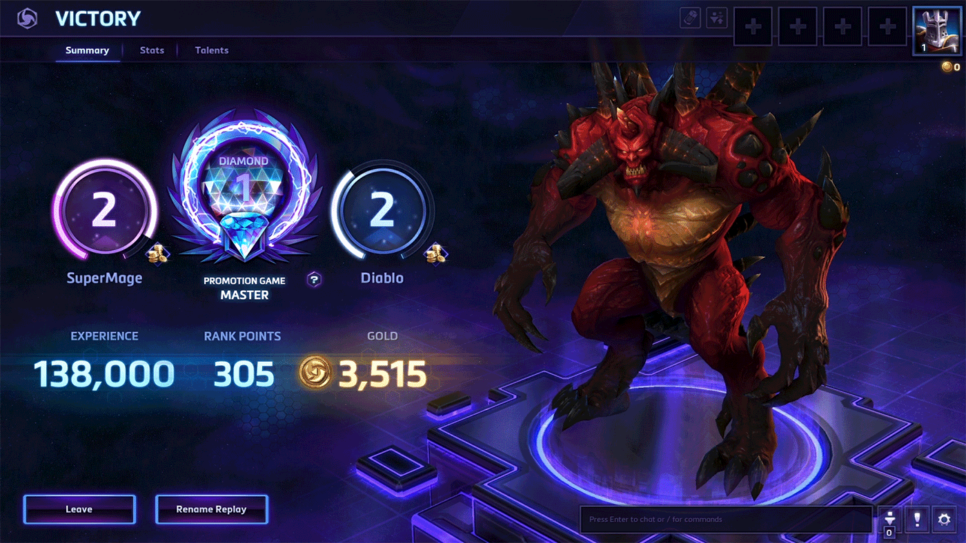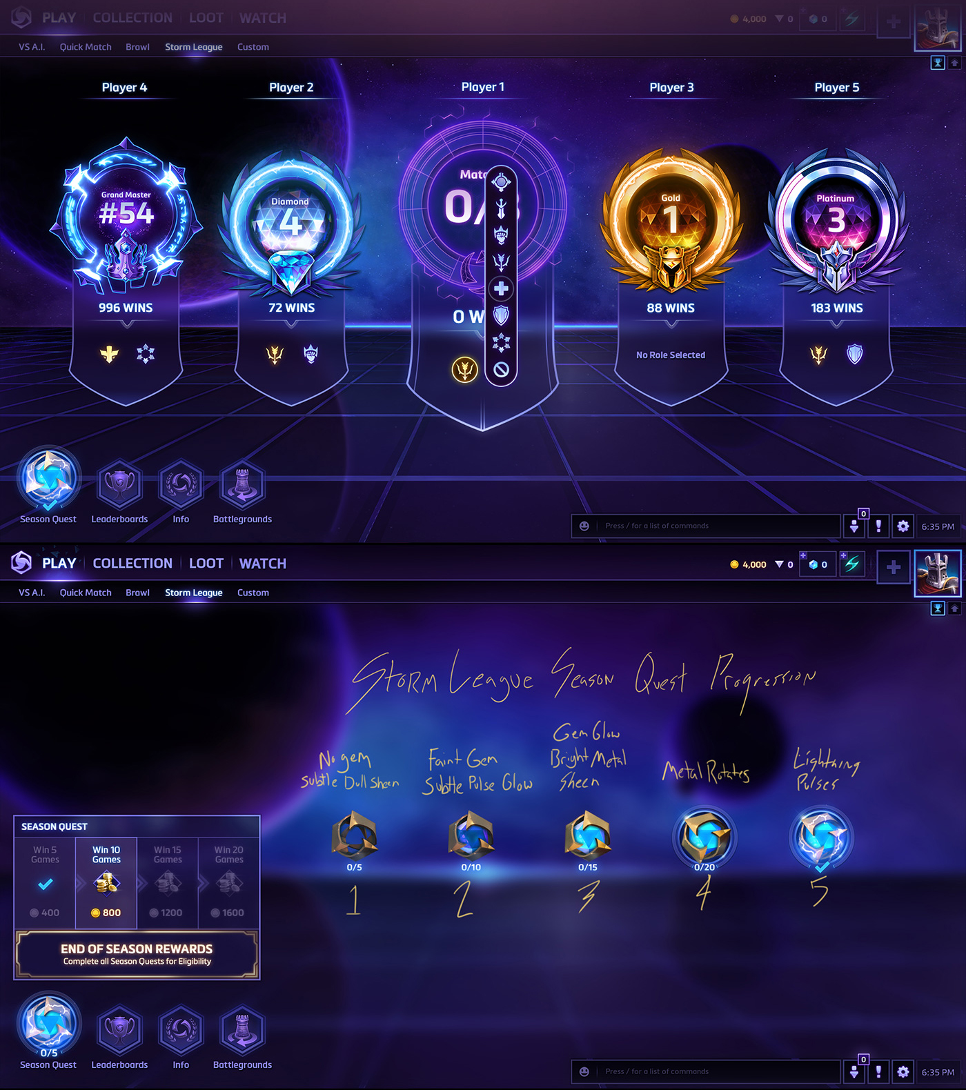 段位设定仍然和暴雪的其他游戏差不多,和星际争霸甚至一模一样。但作为一款正经的 MOBA 游戏,风暴英雄对段位的展示比暴雪的其他游戏要强调得多,而且动态效果华丽,感觉从这款游戏里攒到的经验,后续在守望先锋都用上了。