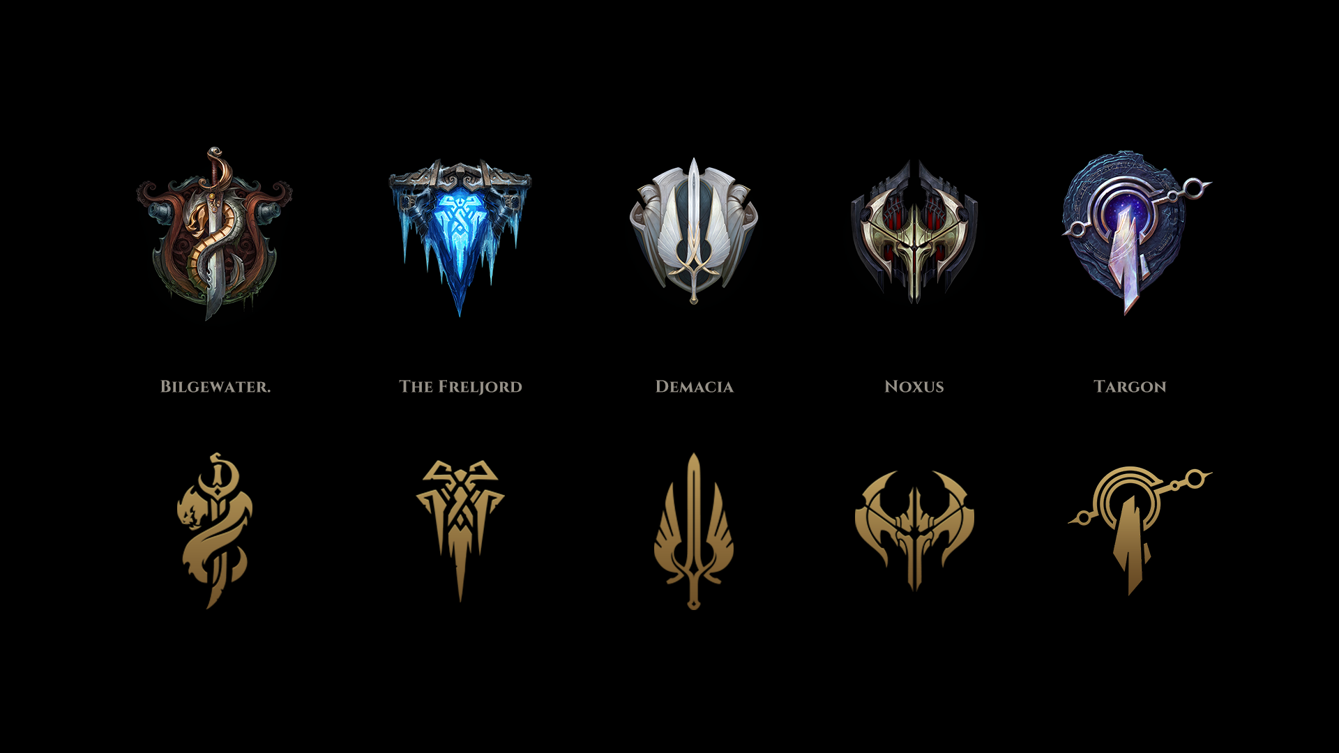 对付这种过于精致视觉比重太大的图标,常规的解决办法是另外准备一个简单的剪影版。比如英雄联盟的地域徽标,都有对应的剪影版: