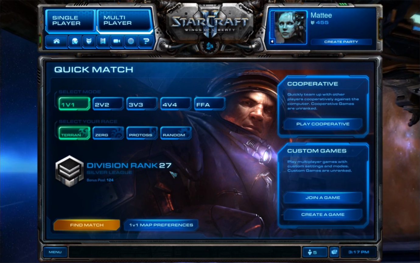 如上图所示,星际争霸共有六个段位,依次是青铜 / 白银 / 黄金 / 铂金 / 钻石 / 大师,以及大师之上排名前 200 的宗师。这个段位设置我们还会在其他暴雪游戏中看到,非常朴实无华。