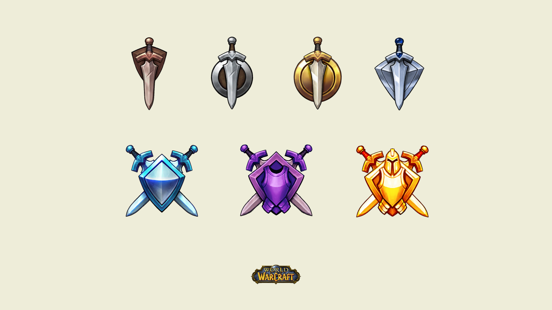 新段位图标刷新之后,头盔的概念自然比之前的展翼造型更清晰明了,但是如何理解呢?联想到鬼蟹在两家公司的职位,我甚至有一个毫无依据的推测:这个头盔与前面出现过的魔兽世界竞技场图标放在一起比较,思路是一以贯之的,就是将玩家定位成 脚男 战士。战士的武力、荣誉和地位,不就全凭剑盾盔甲来体现吗?