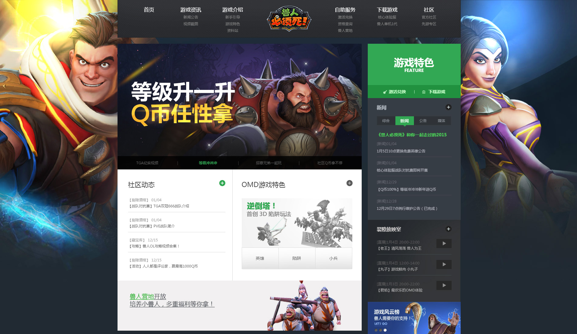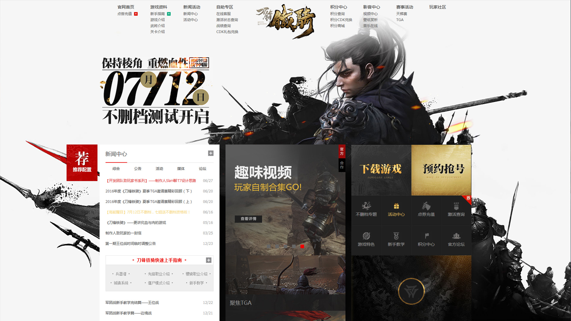 当然,这两种类型也会有交汇合流的时候。在一个网游发布之后,正式上线之前,各种运营活动都还没有展开,那网站设计自然也会更强调游戏自身特色,突出视觉效果,看起来就比较接近欧美的风格了。在国内,这个阶段的网站一般叫「预告站」或者「悬念站」。