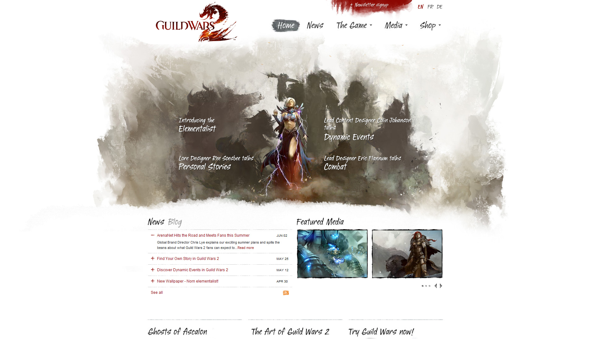 出身决定命运,也决定了两个地区不同的发展路线,所以韩国网站侧重内容和排版,而欧美网站强调视觉效果,总体风格自然分道扬镳,各自演化。即使到后来,欧美也出现了魔兽世界、激战、Rift 这样的网游巨作,但是因为设计风格的延续和传承,它们和韩国游戏网站的风格还是能轻易区别开来。