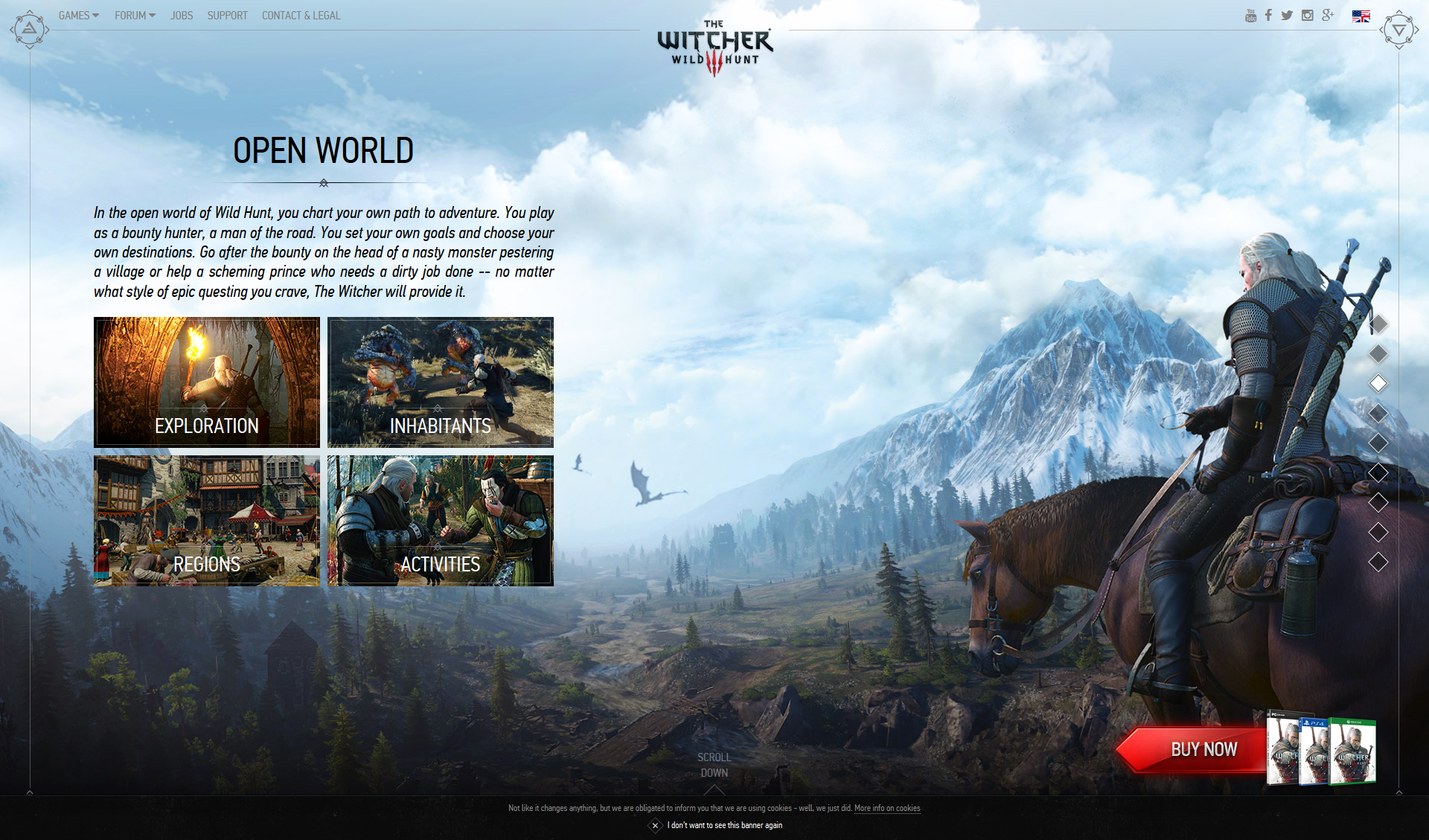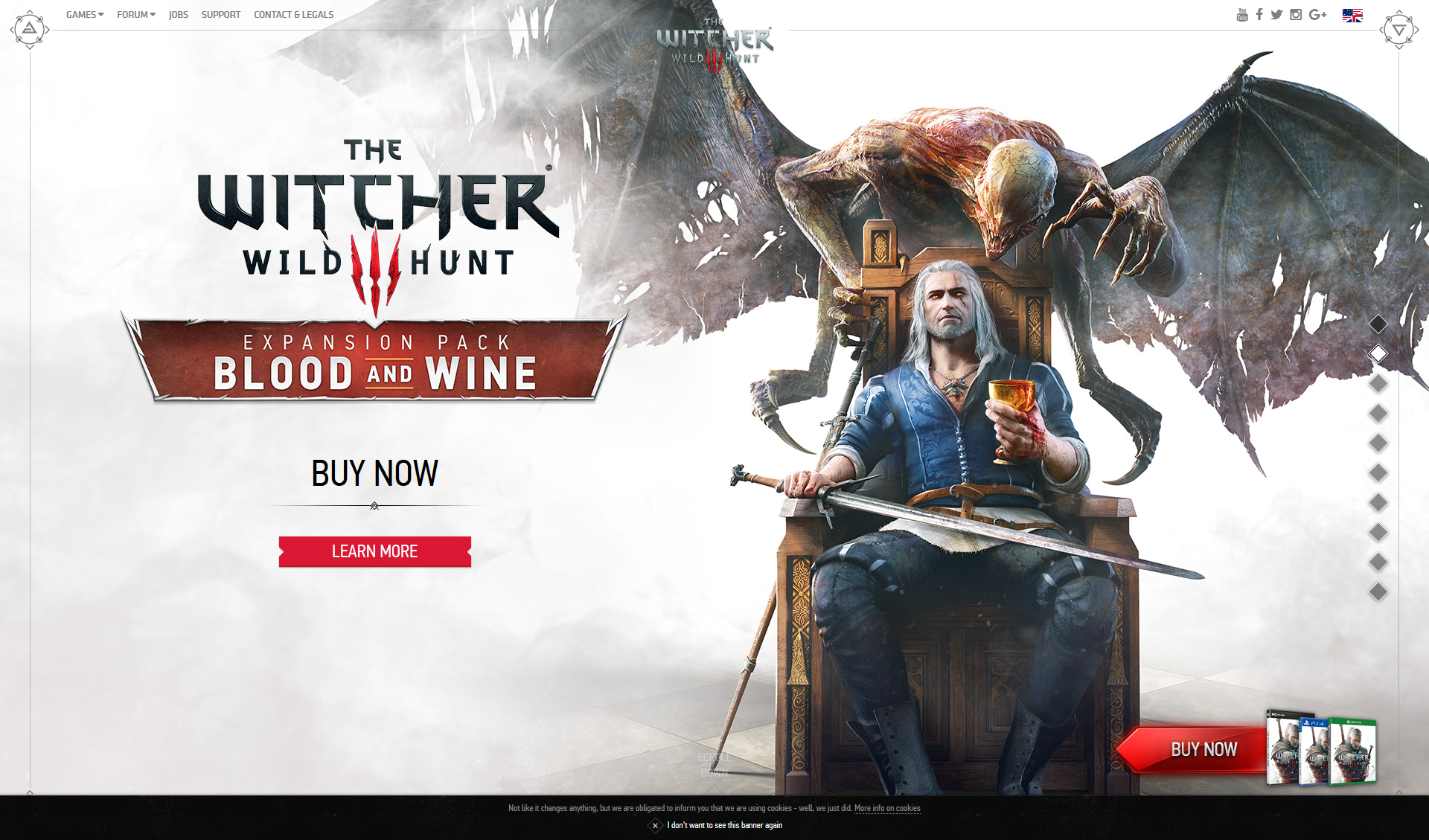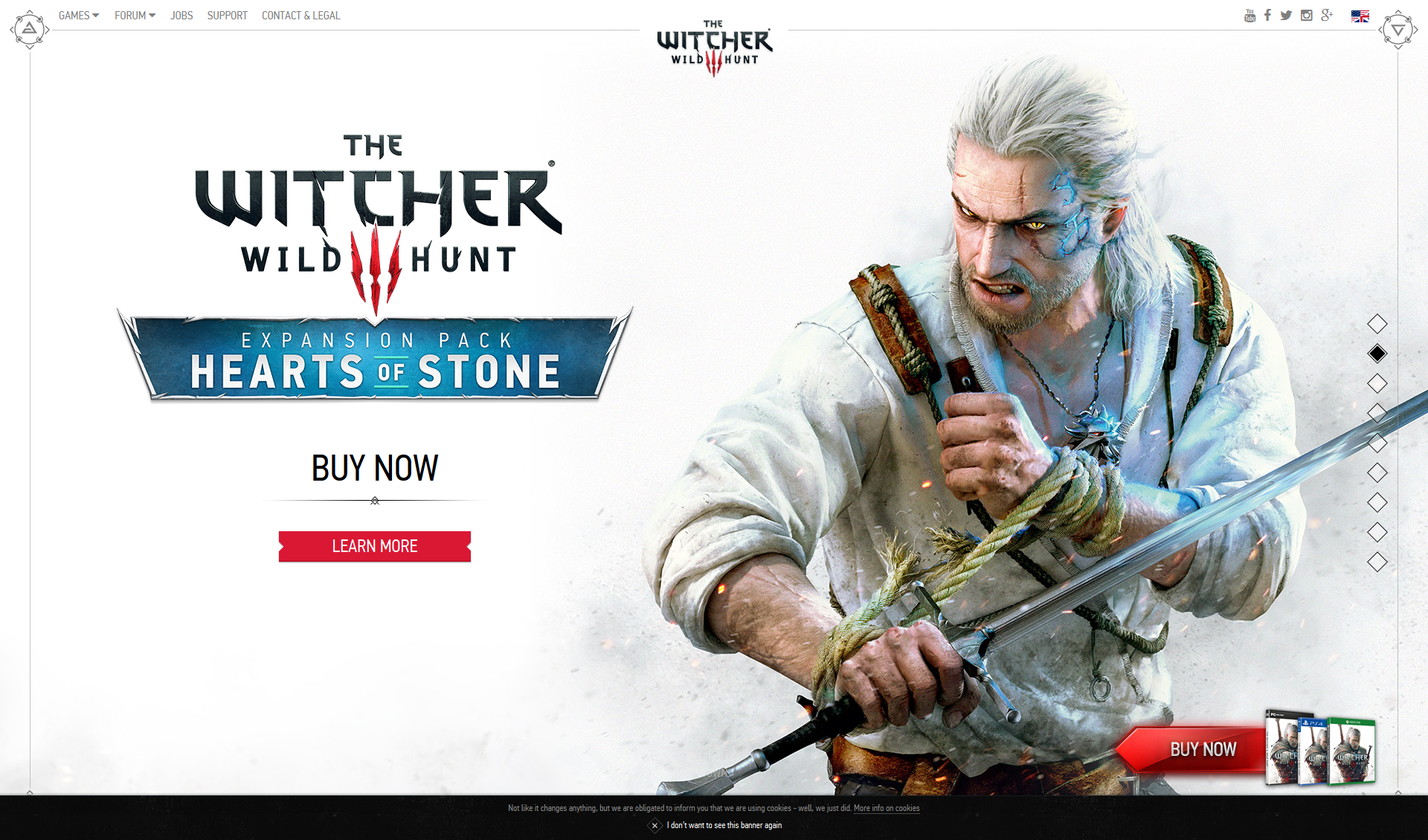 譬如在过去的 2015 年,最受瞩目的年度大作之一『The Witcher 3』,它的网站是这样的: