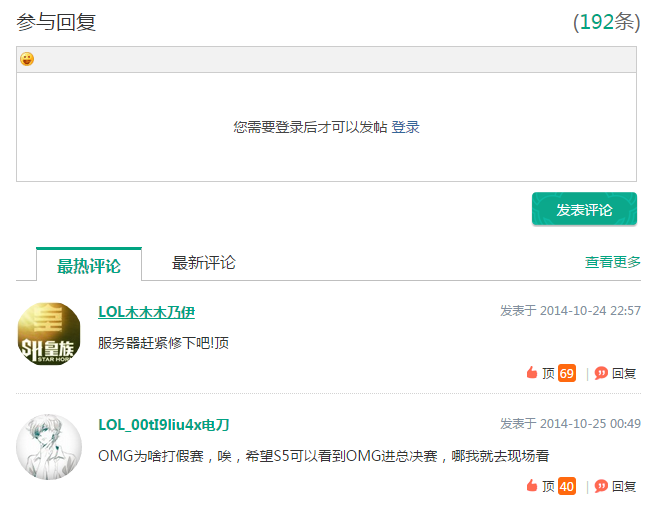 英雄联盟官网 ( http://lol.qq.com/ ) 新闻下的评论功能