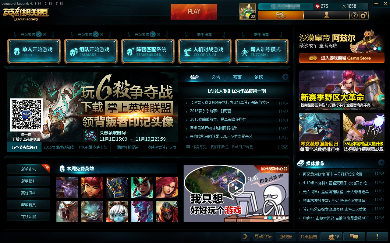另外,现在玩家接收官方资讯的渠道也越来越丰富,微博的影响力虽然不断减弱,但微信营销正是如日中天,微信公众号几乎成为市场推广的标配,同时随着移动端开发的日渐成熟,游戏专属 APP 也将会越来越普及。在PC端,游戏客户端(或 launcher)的发展也仍在继续,功能整合越来越全面,以配图中的英雄联盟 Launcher 为代表,已经能承载大部分的运营资讯。而游戏领域的领导者暴雪,其战网应用更将旗下所有游戏打通,已经在平台整合的路上树立了极佳的典范,这可能会促成游戏 Launcher 的又一次革新。最近腾讯也推出了意在整合的 TGP 平台,与战网平台有很多共通之处,可惜各游戏之间的用户关系还没有打通,如果腾讯高层能给予足够的重视,假以时日,前景非常值得期待。
