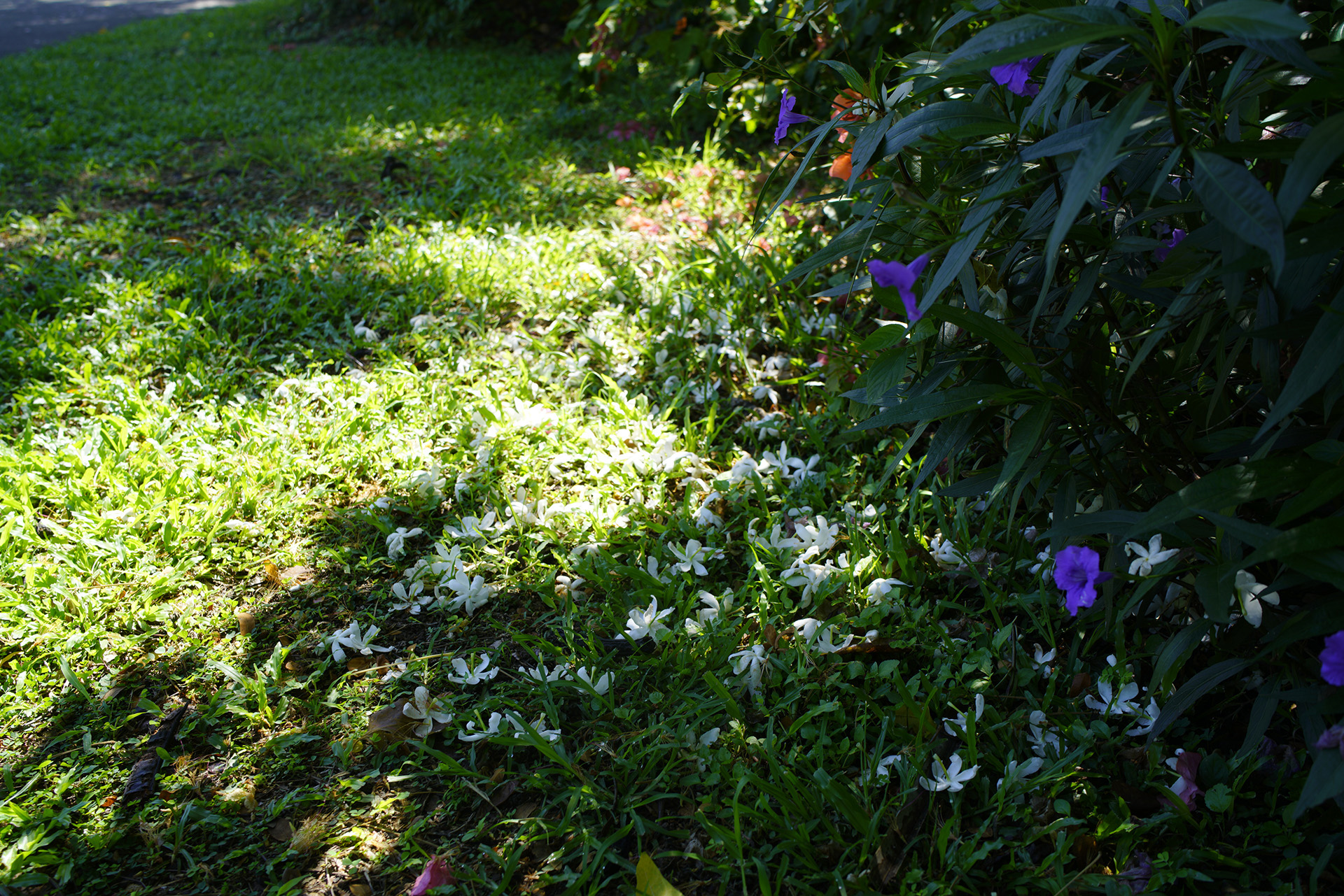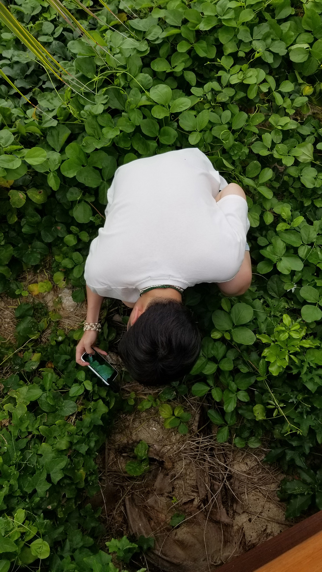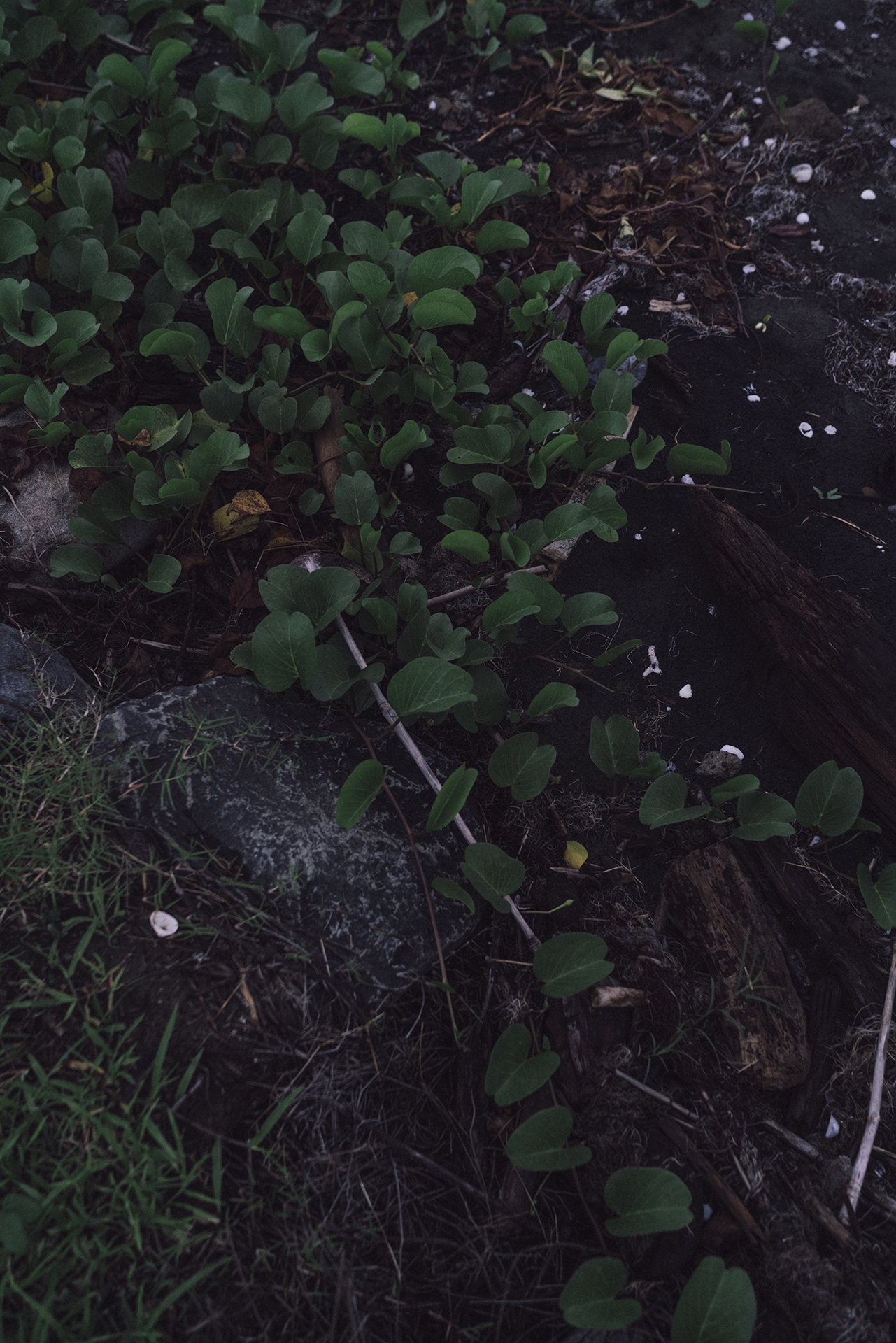 酒店栏杆下就是沙滩,栏边灌木繁茂,皆草海桐之属,树影下藏着很多寄居蟹,比寻常所见大了许多,人近之则卑伏如圆石,人去则款缓爬行。有一只蟹壳上涂了个数字 3,好像战斗装甲的序列,颇觉奇特。蹑足而下,想拍它却已隐匿不见了。蜥蜴也多,体态纤小,穿行迅疾,但匍匐不动的时候便很难发现。除此之外则蚂蚁无量数。