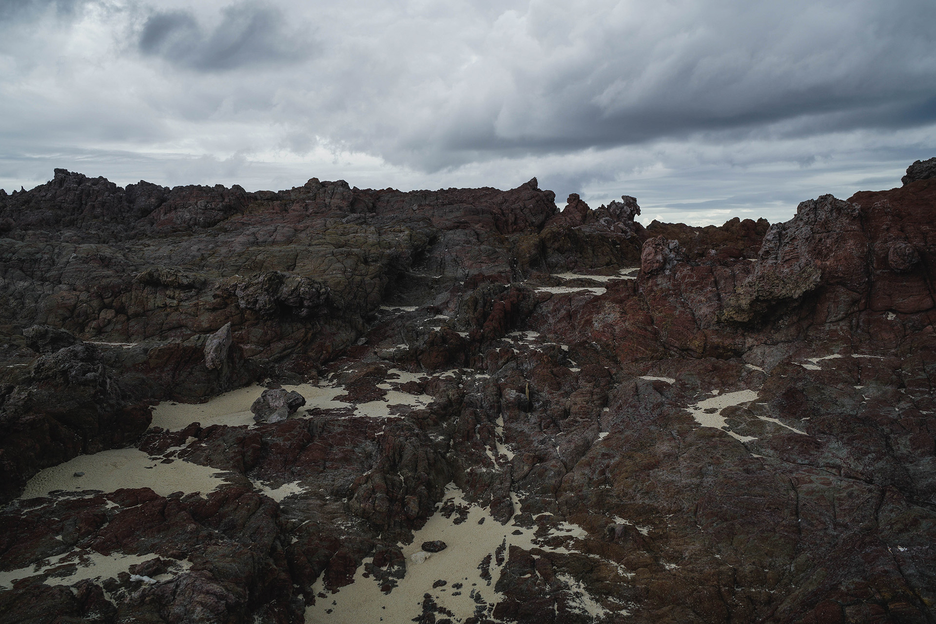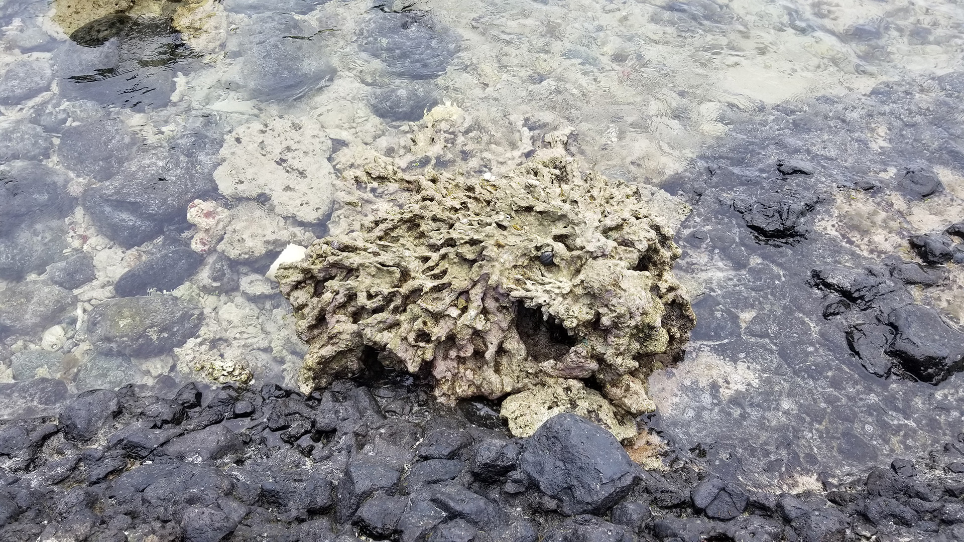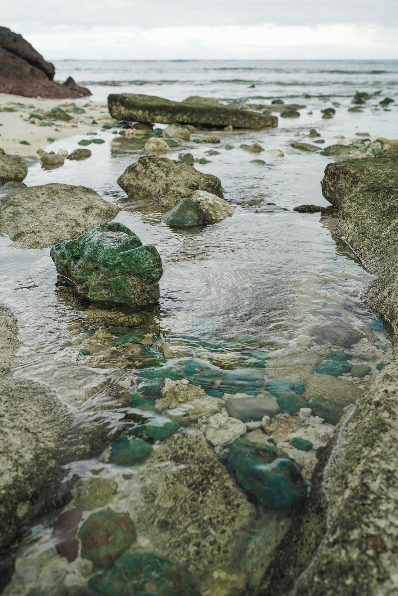 乱石间巨石绵亙,居然自成一条平坦的石径。罅隙之间,积水成泓,鱼虾孓孑在水洼里嬉游,异色纷纭,品类咸多,摇尾弄鳍,也都怡然自得。经过之时,常有某物自水边石缝中窜入水底,身影迅绝,开始以为是蟹,后来听 Hannah 说那是滩涂鱼。