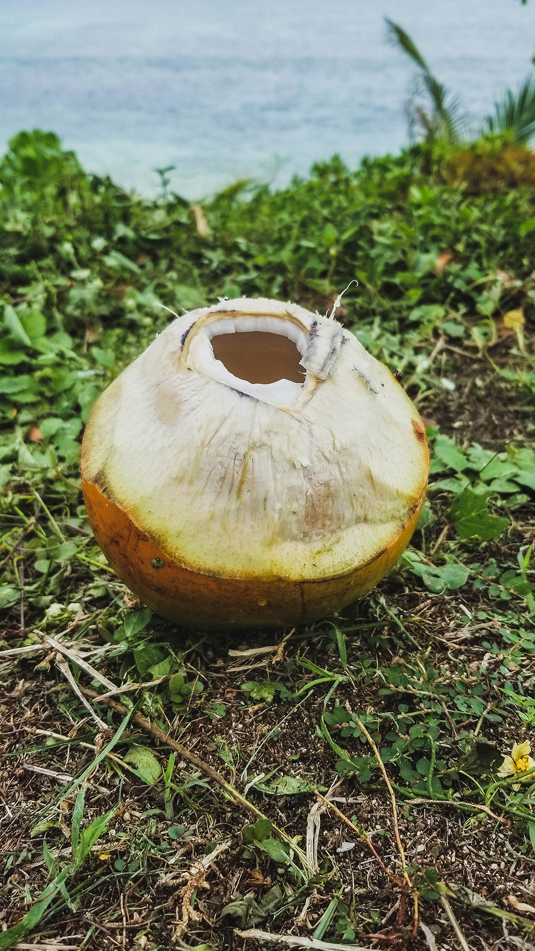 刚出门欠伸了一下,便看见一个土著黑人立于树荫下,微笑着向我招手。虽然有些莫名,但还是过去寒暄了几句。他便说这里的椰子超好吃,酒店售二十元一个,他去采才十元一个,颇为古怪。想了想也不妨试试,一笑纳之。