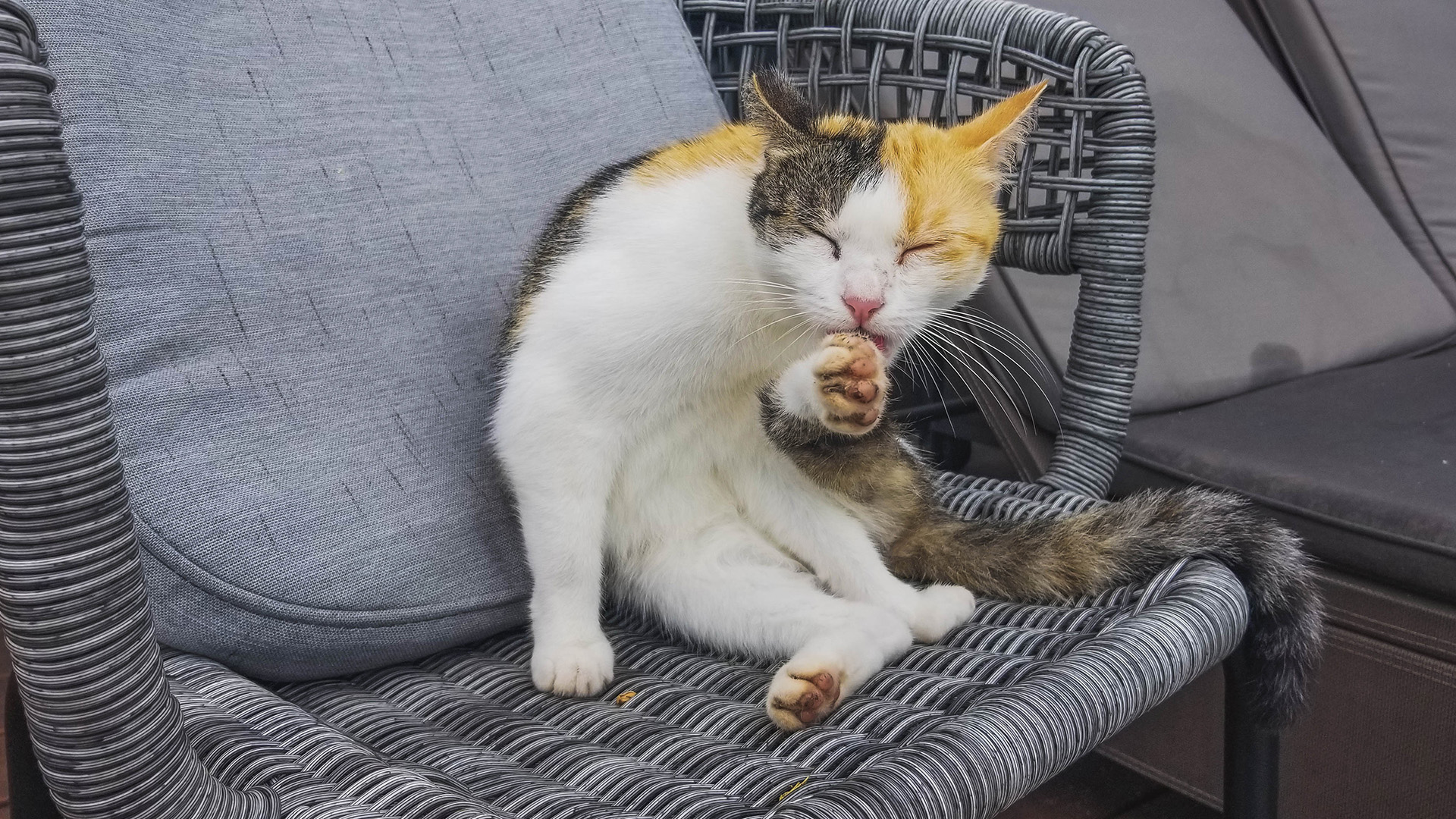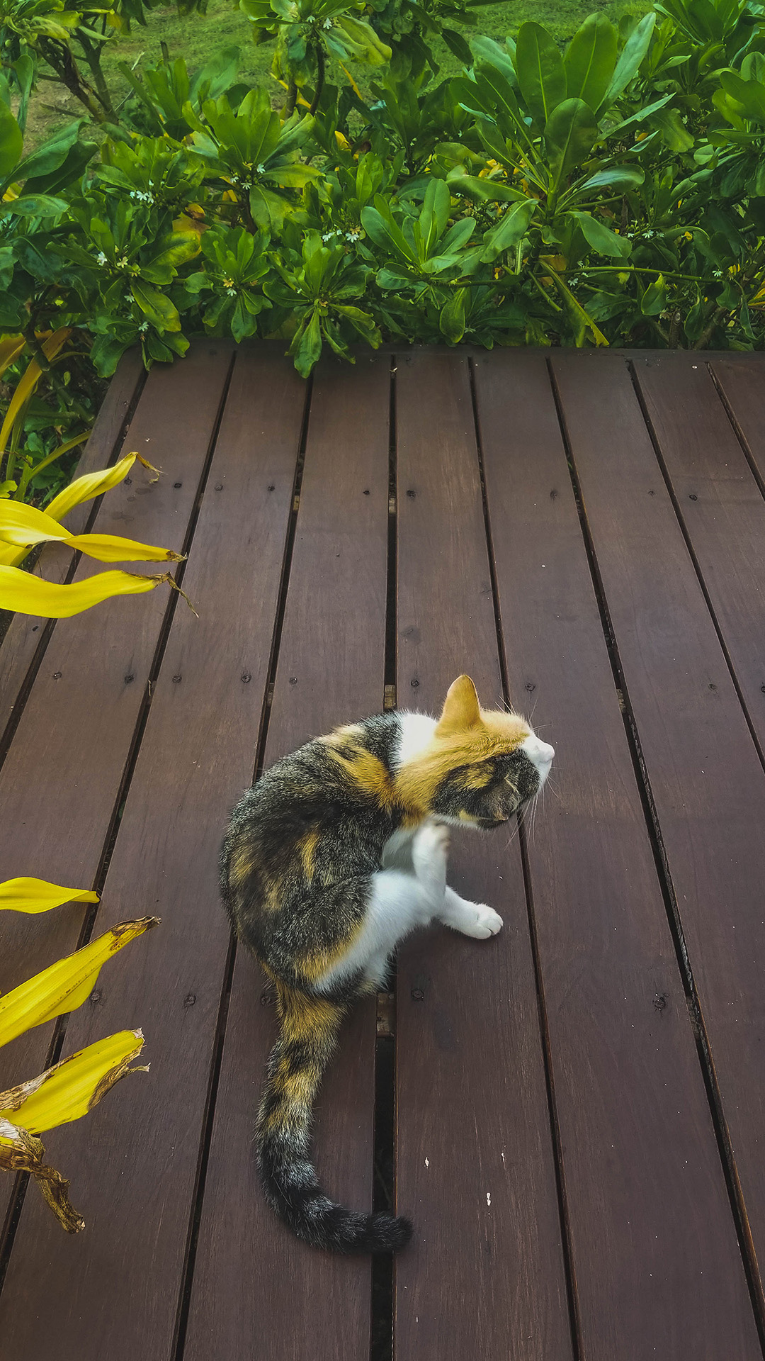 岛上的水可能盐分颇多,洗手洗澡都觉得黏黏湿湿的。猫吸收的盐分多了,容易掉毛,这只三花脊背上的毛已经有些稀疏了,起手稍重便毛毳飞腾,让人好生怜惜。