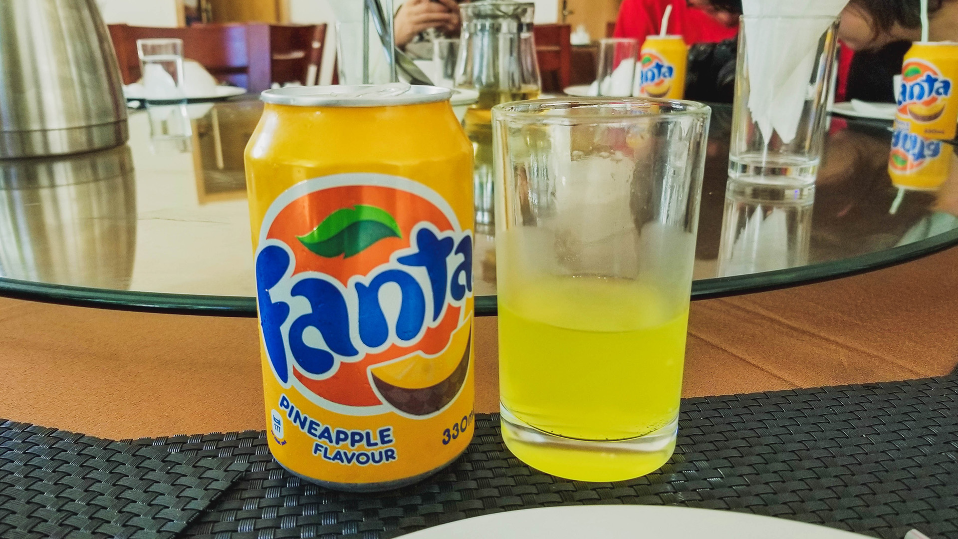 点饮料的时候,服务生推荐我们尝一下这里的美年达,菠萝味,国内没有的,他笑着说。不料送上来之后 Mike 捧腹大笑,原来他夫人最爱喝,每次去超市都是论箱买,冰箱里随时备用,所以美国大概也很流行。