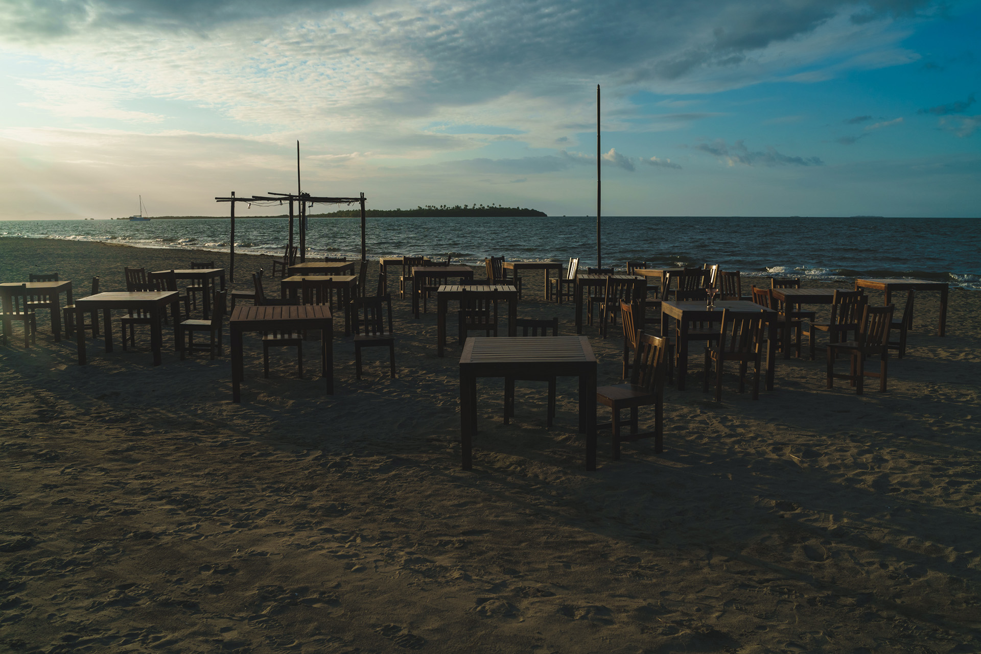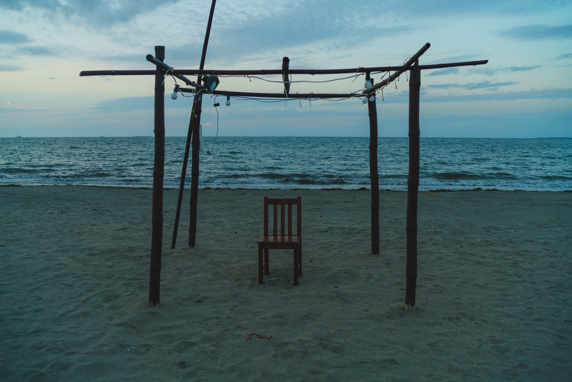 四点一刻,房间终于备妥。这酒店里尽是滨海而建的平房,白顶木墙,自中心划线,分作四间。我们那间位于西南,直面大海,下临沙滩。卸下行囊,合上房门,把自己扔在床上,立马睡去。仿佛一时天地间并无人语,除去自己逐渐深沉的鼻息,就只有门外终古不歇的拍岸潮声了。