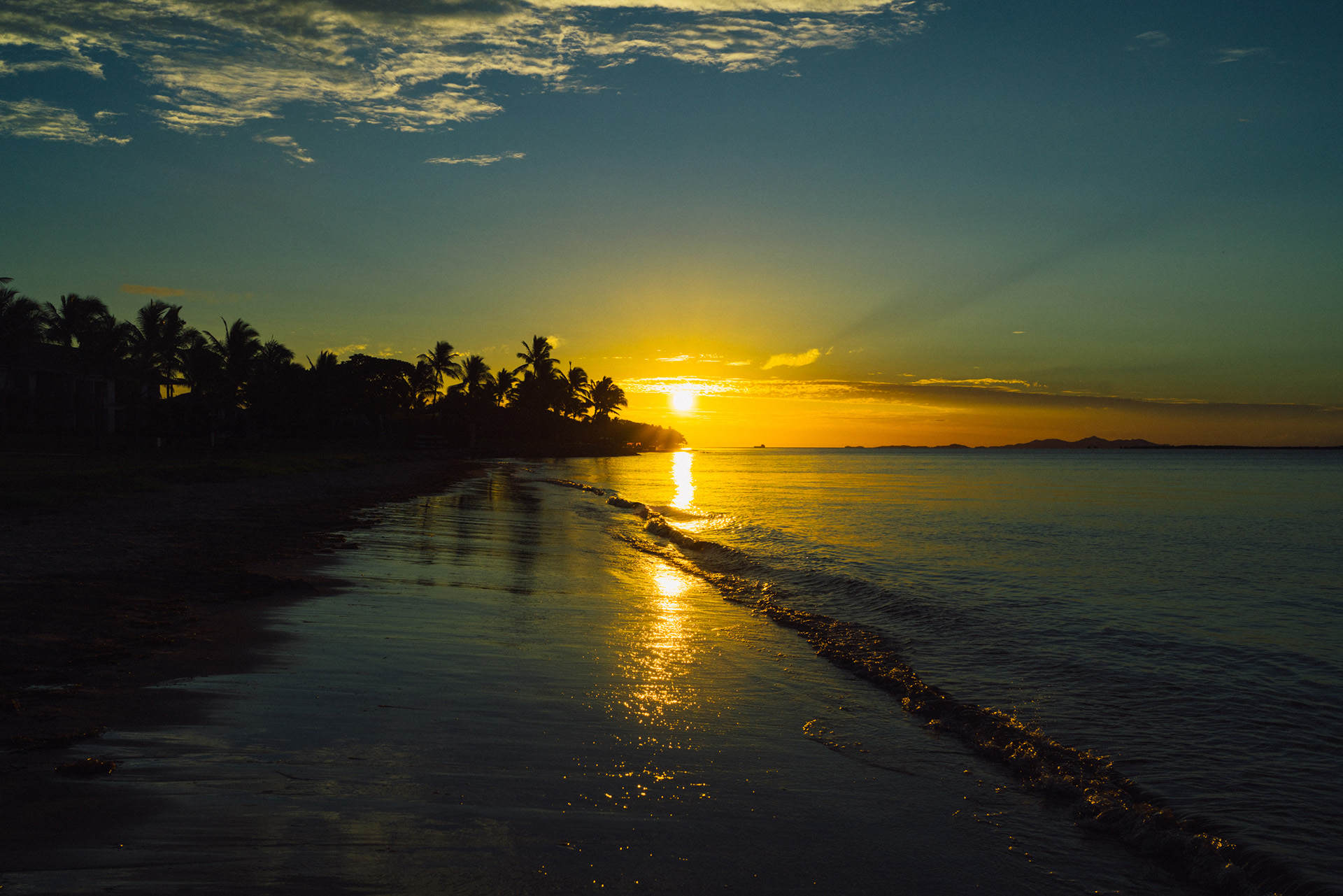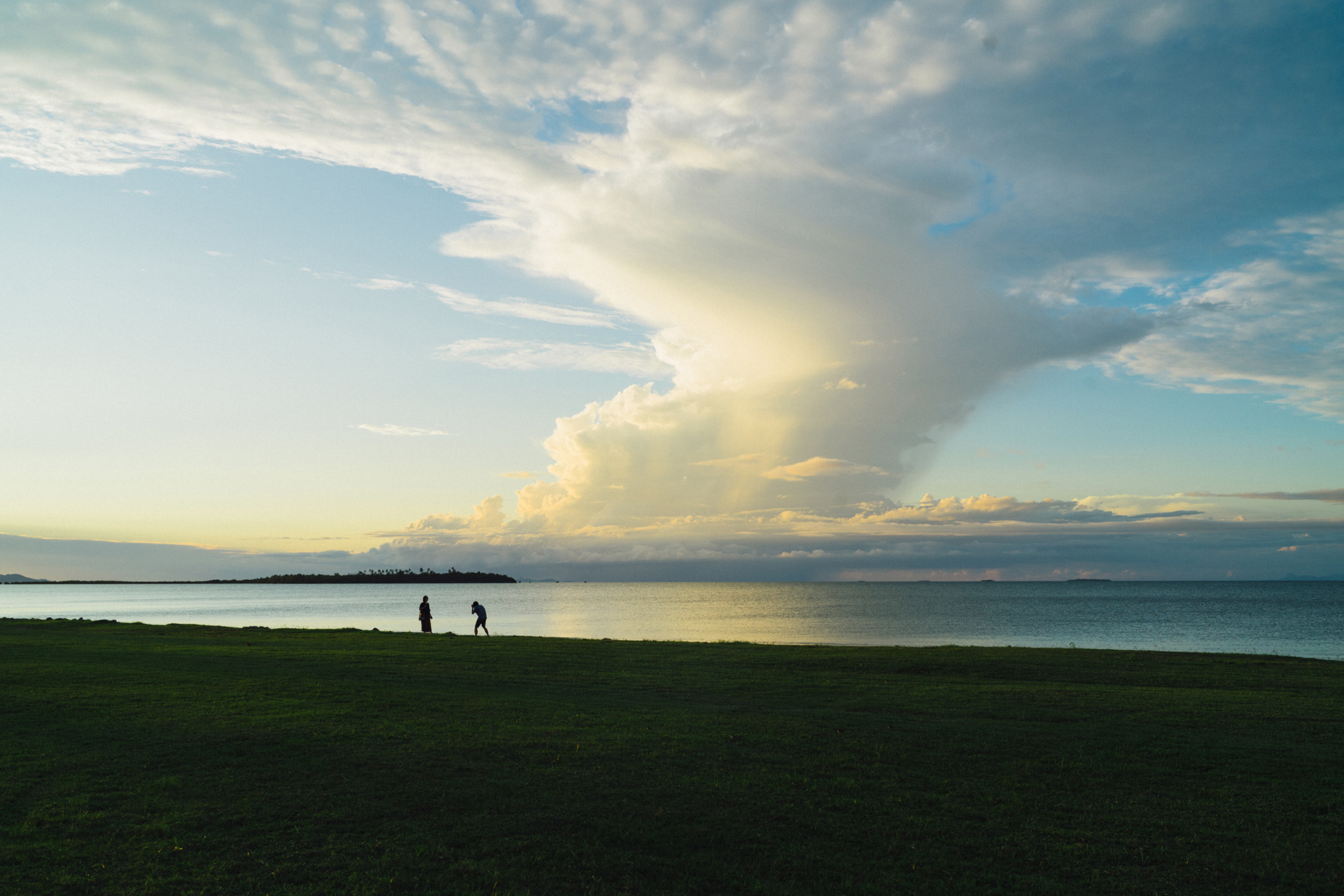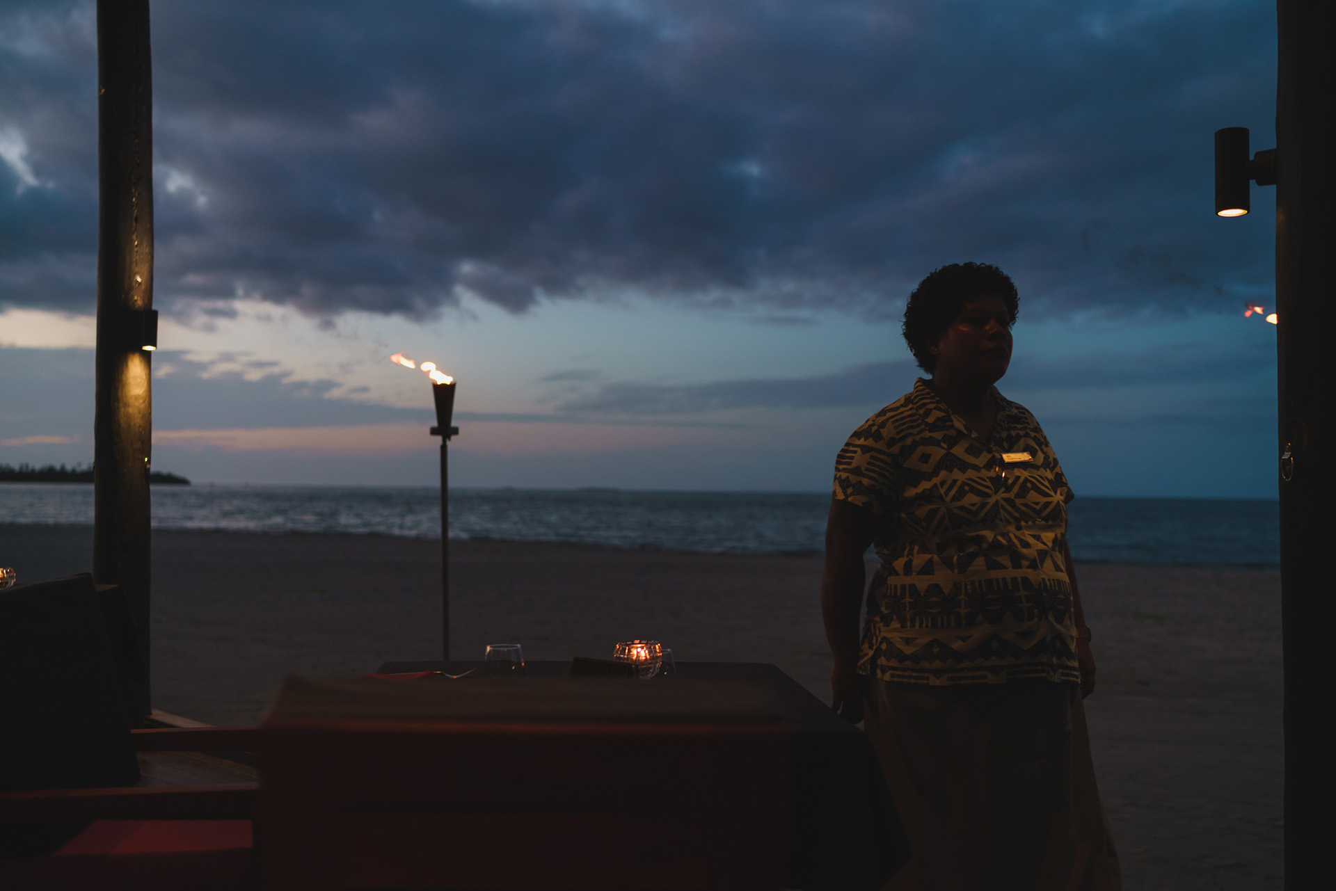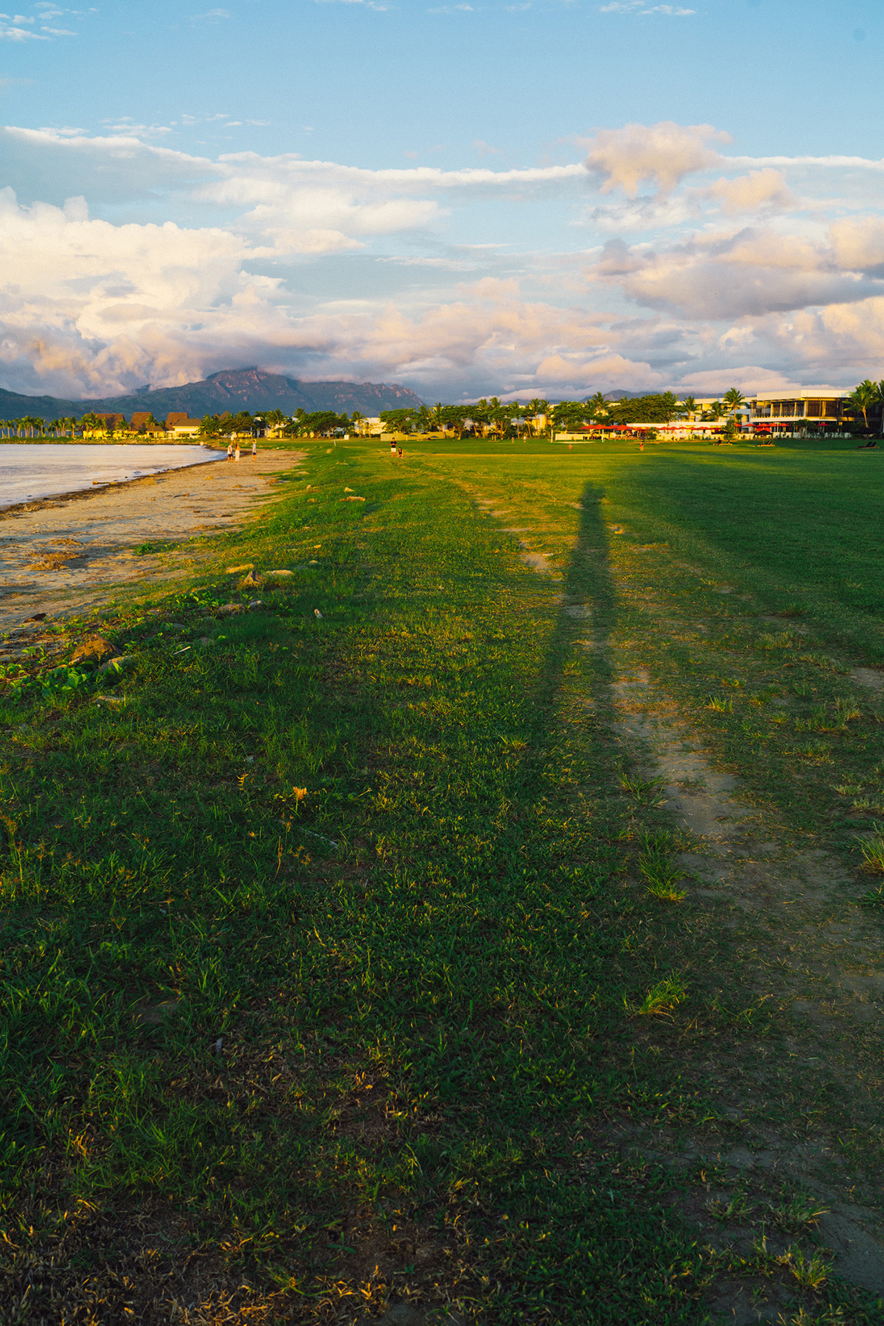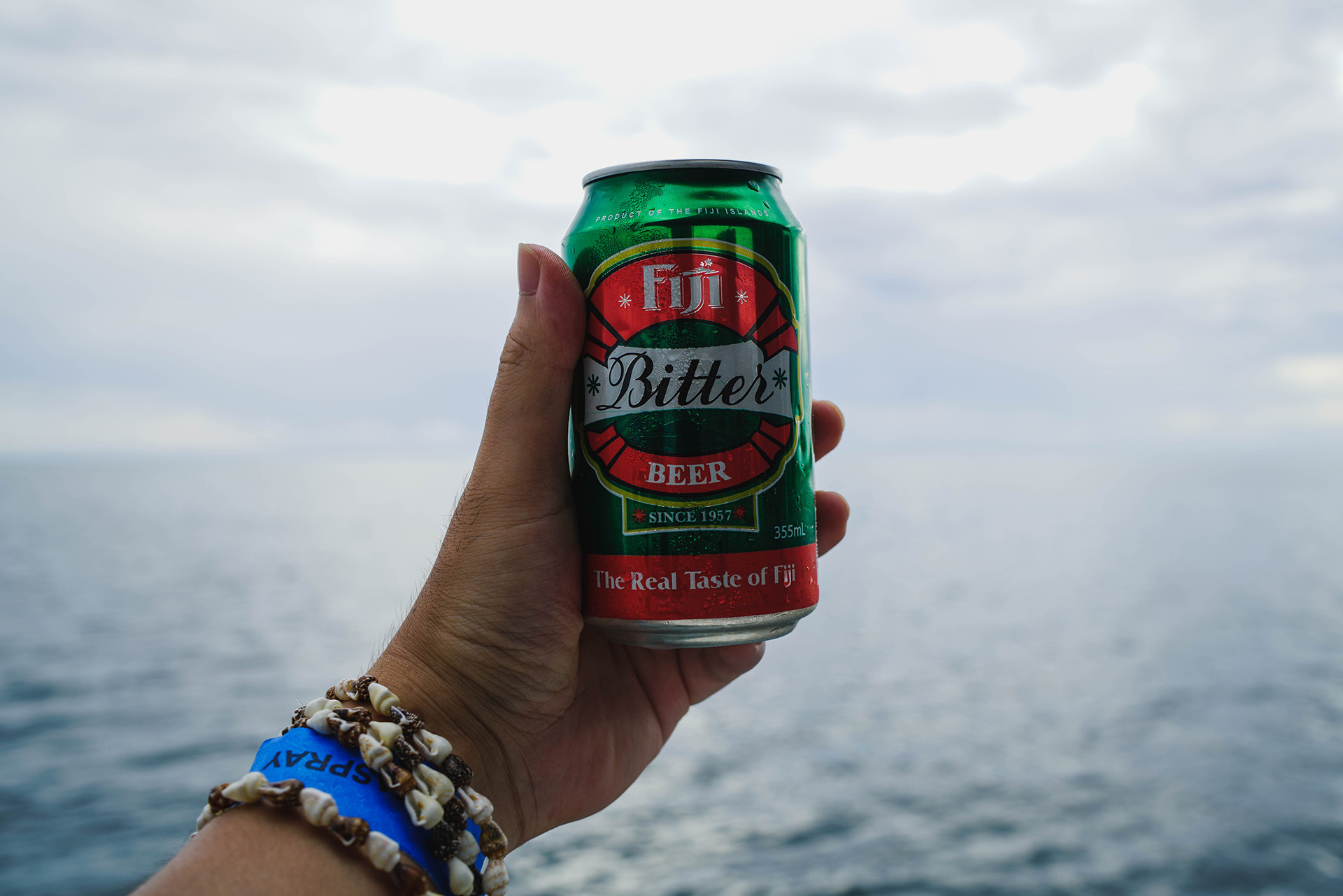 傍晚,夕阳绝美,海岸线蜿蜒不绝,彳亍于海边,侧身四顾,竟觉得无一物可以入镜。在吧台点了一支 Fiji Bitter,杯酒在手,差可忘忧。