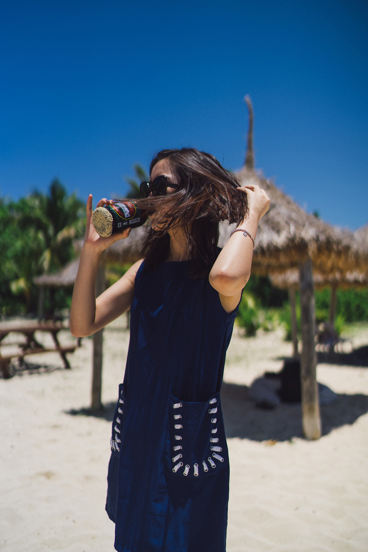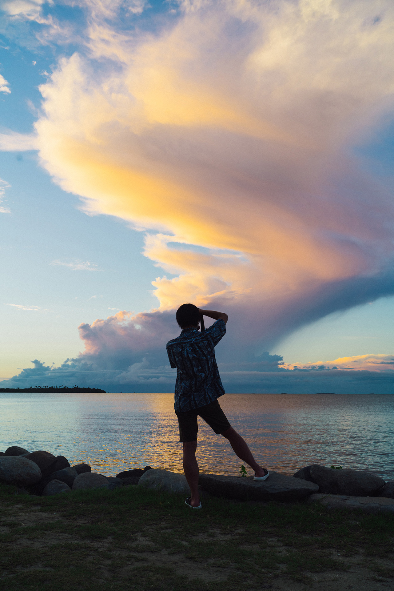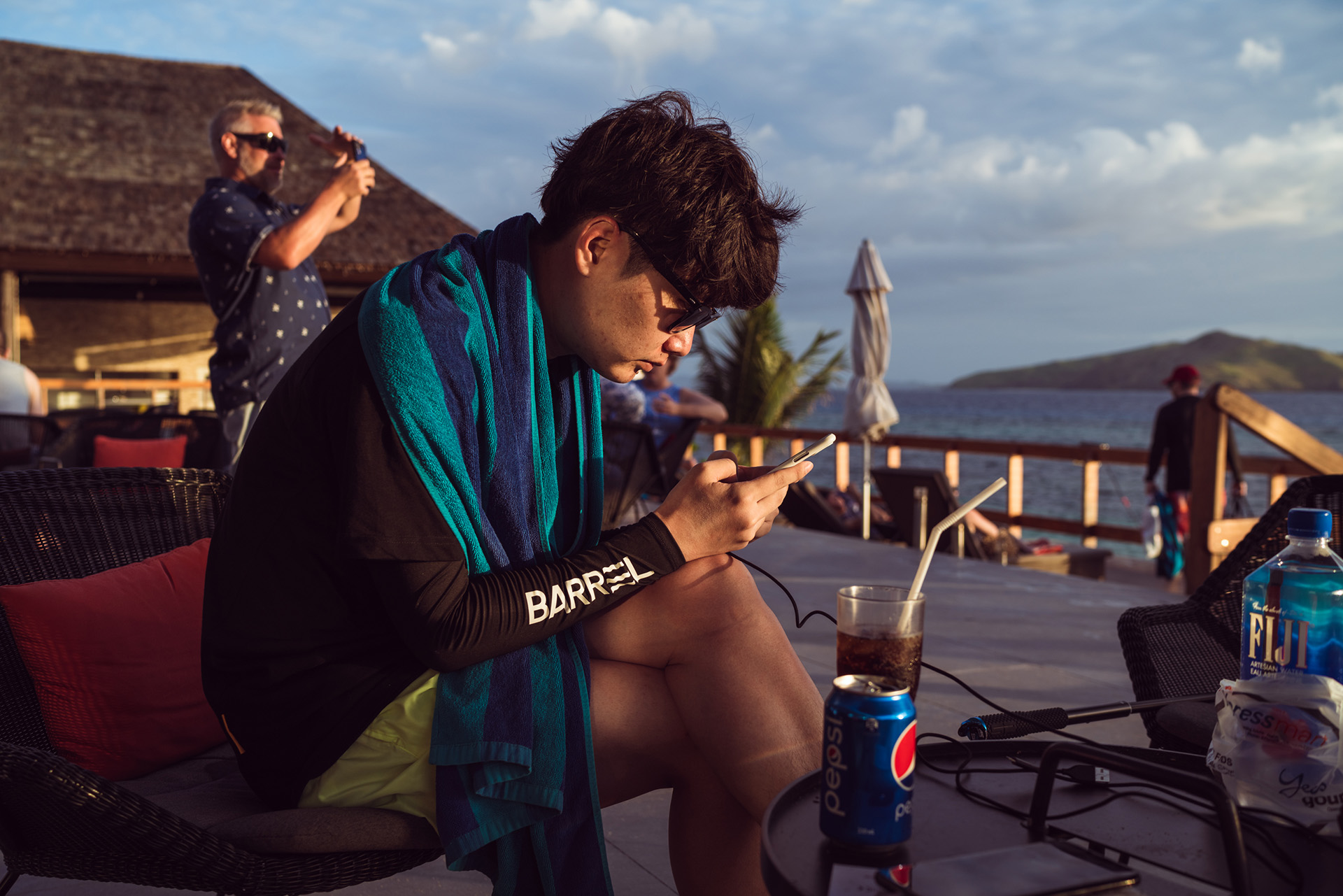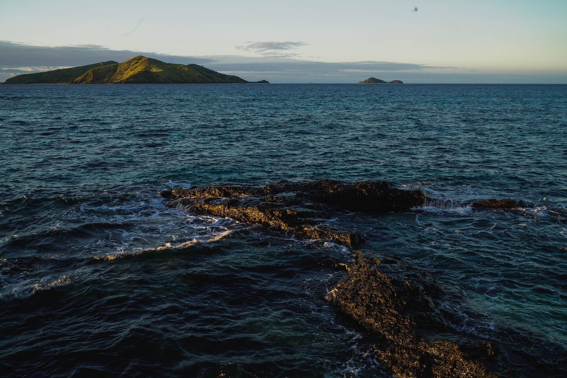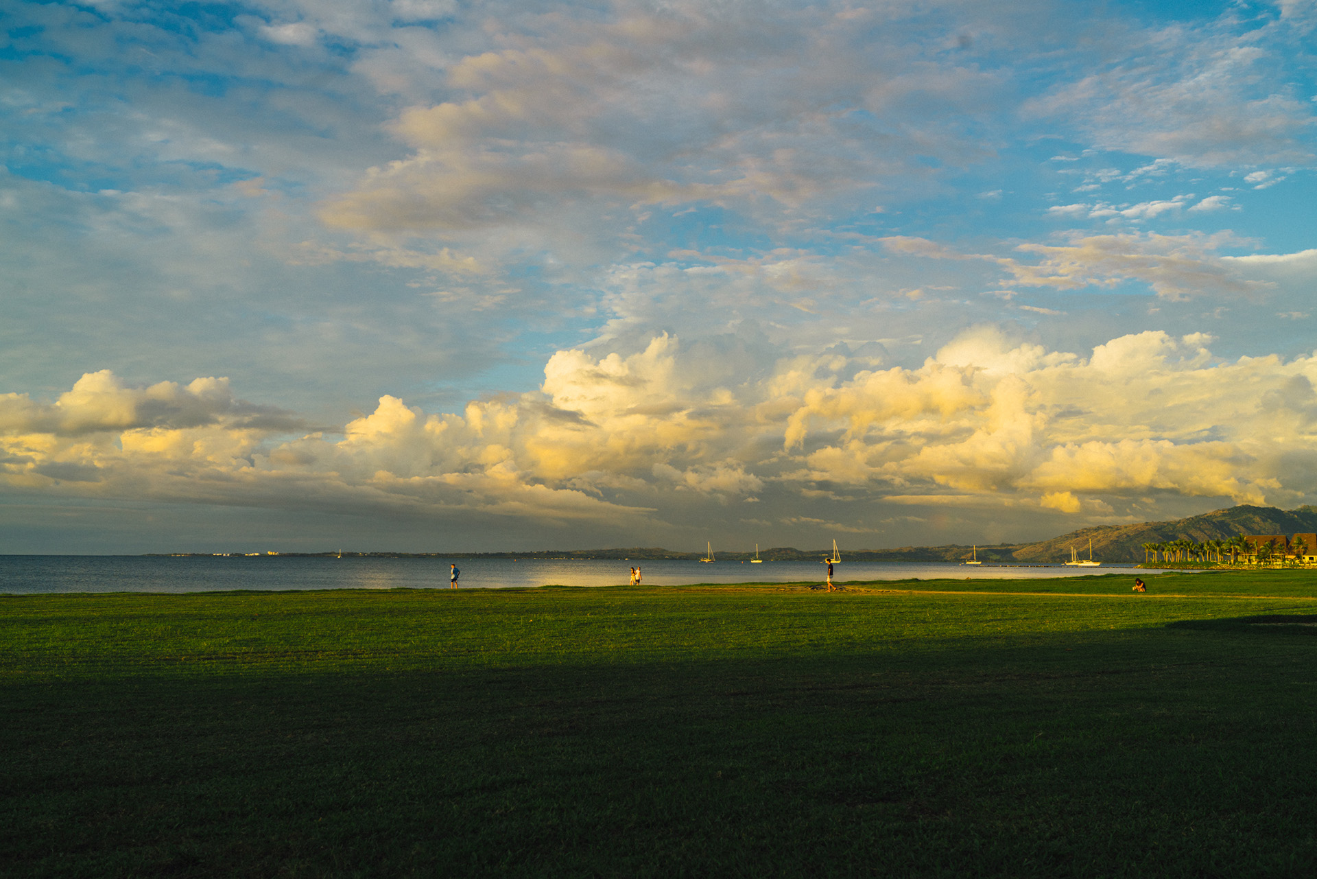 傍晚,夕阳绝美,海岸线蜿蜒不绝,彳亍于海边,侧身四顾,竟觉得无一物可以入镜。在吧台点了一支 Fiji Bitter,杯酒在手,差可忘忧。