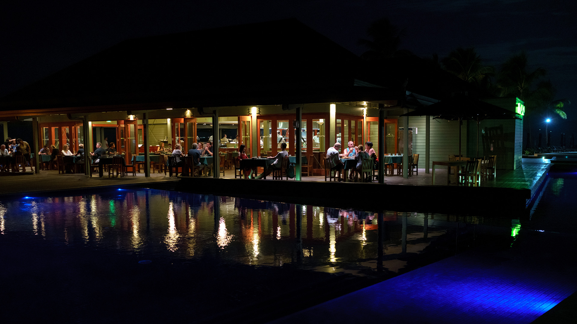 天黑以后,大家就在沙滩边的 Maravu 亚洲餐厅用餐。点了个咖喱牛肉,外加一瓶 Fiji Bitter。咖喱香料倒是够多,味觉层次也比较丰富,但关键的问题却很致命……咖喱稀而少。我还是偏爱浓稠一点的咖喱,拌饭太香了。