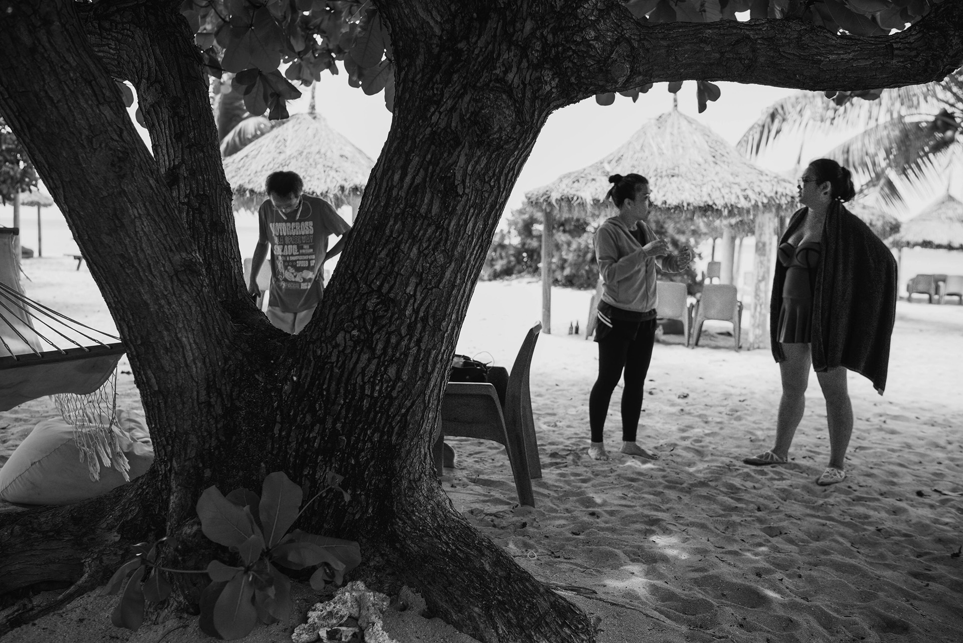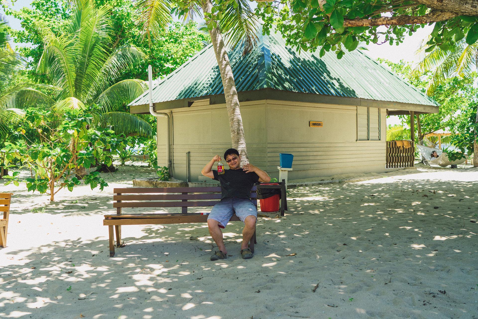 舣船登岛,数十步即至喜来登。酒店效率令人忧郁,我们十点多就 check in 了,当时告知房间还在清理,要三点以后才能入住。饭后百无聊赖,困乏不堪。岛上只建有两家酒店,除此之外并无其他地方可逛。酒店东西两端都是礁石,一弯沙滩铺展南岸,宽可数百米,便是我们停舟泊岸的地方。
