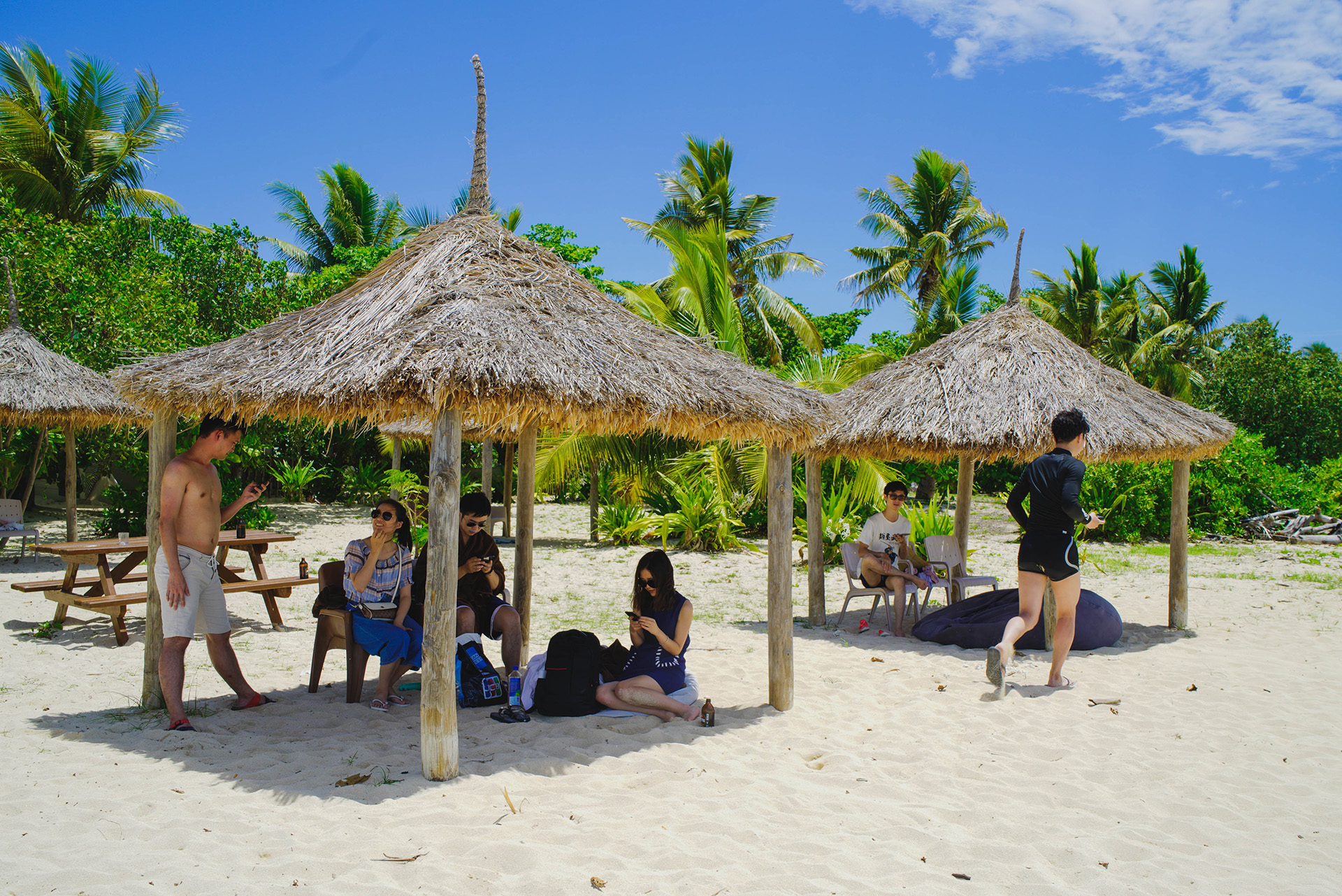 中午在岛上吃了简单的自助餐之后,潜水的人换了片水域继续潜水,美丽的小姐姐已不知转去捕捉何处的美景,我们这些闲人却还是回到原来的茅亭下闲坐。两点左右,领队过来召集大家登船,于是返航。