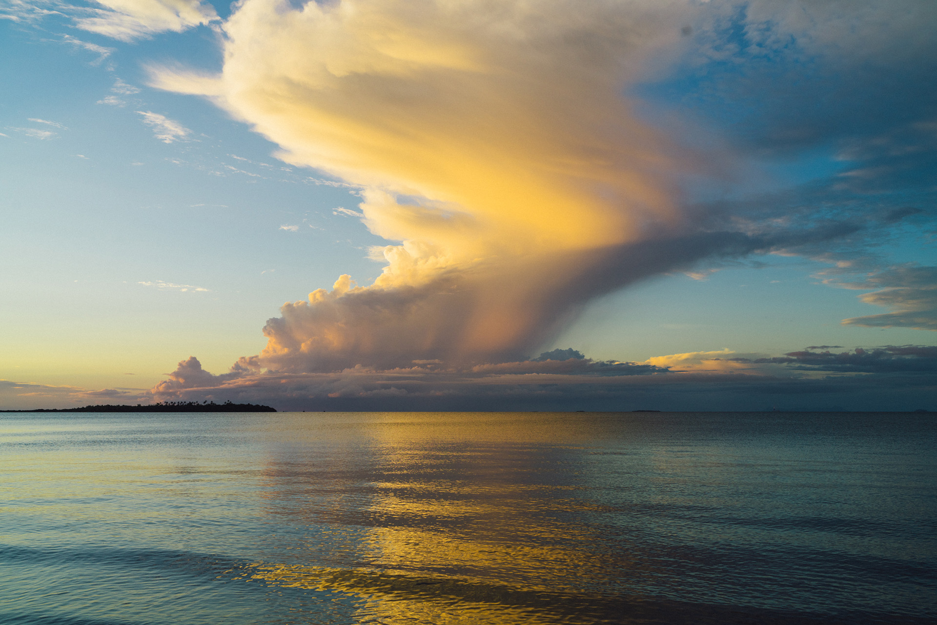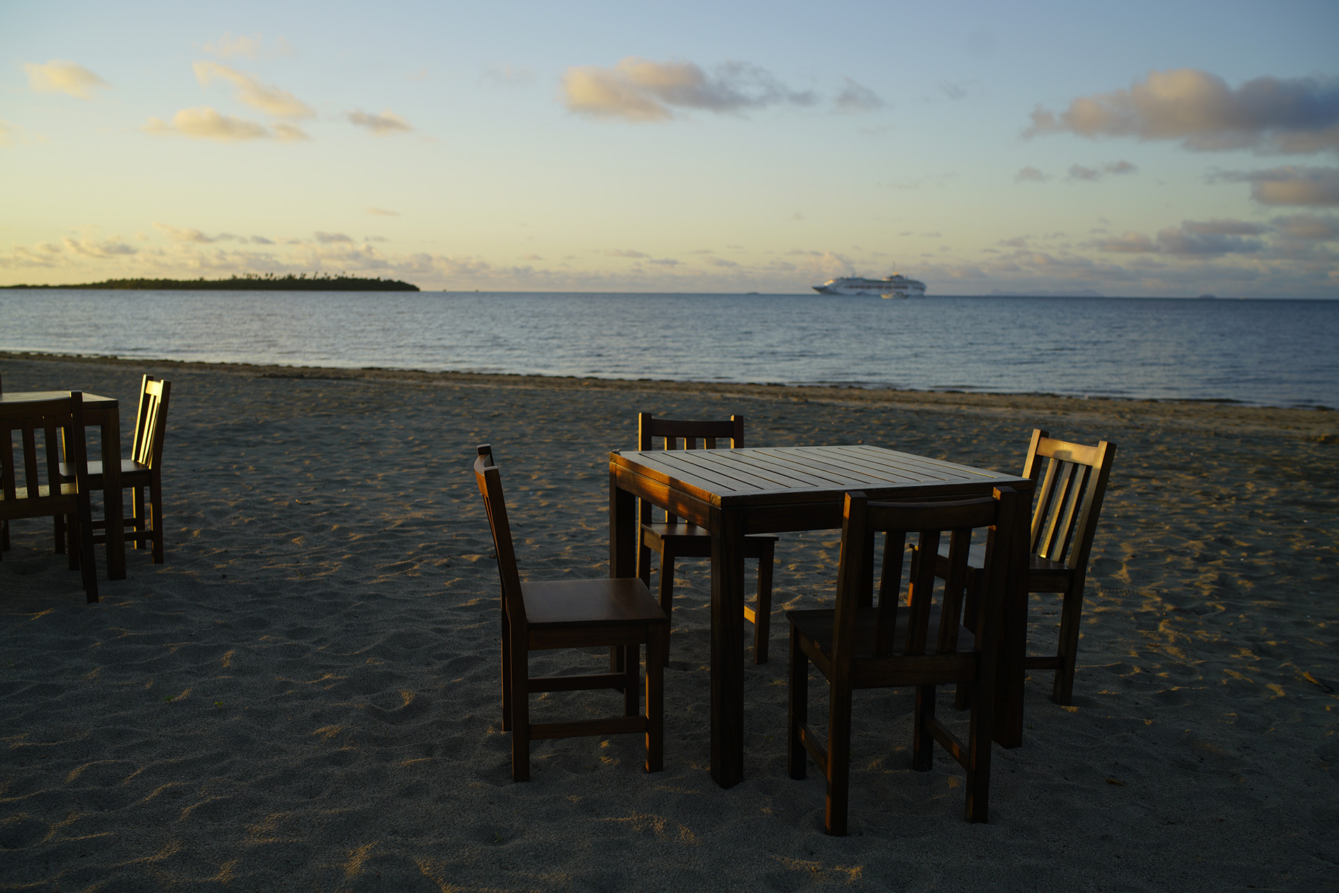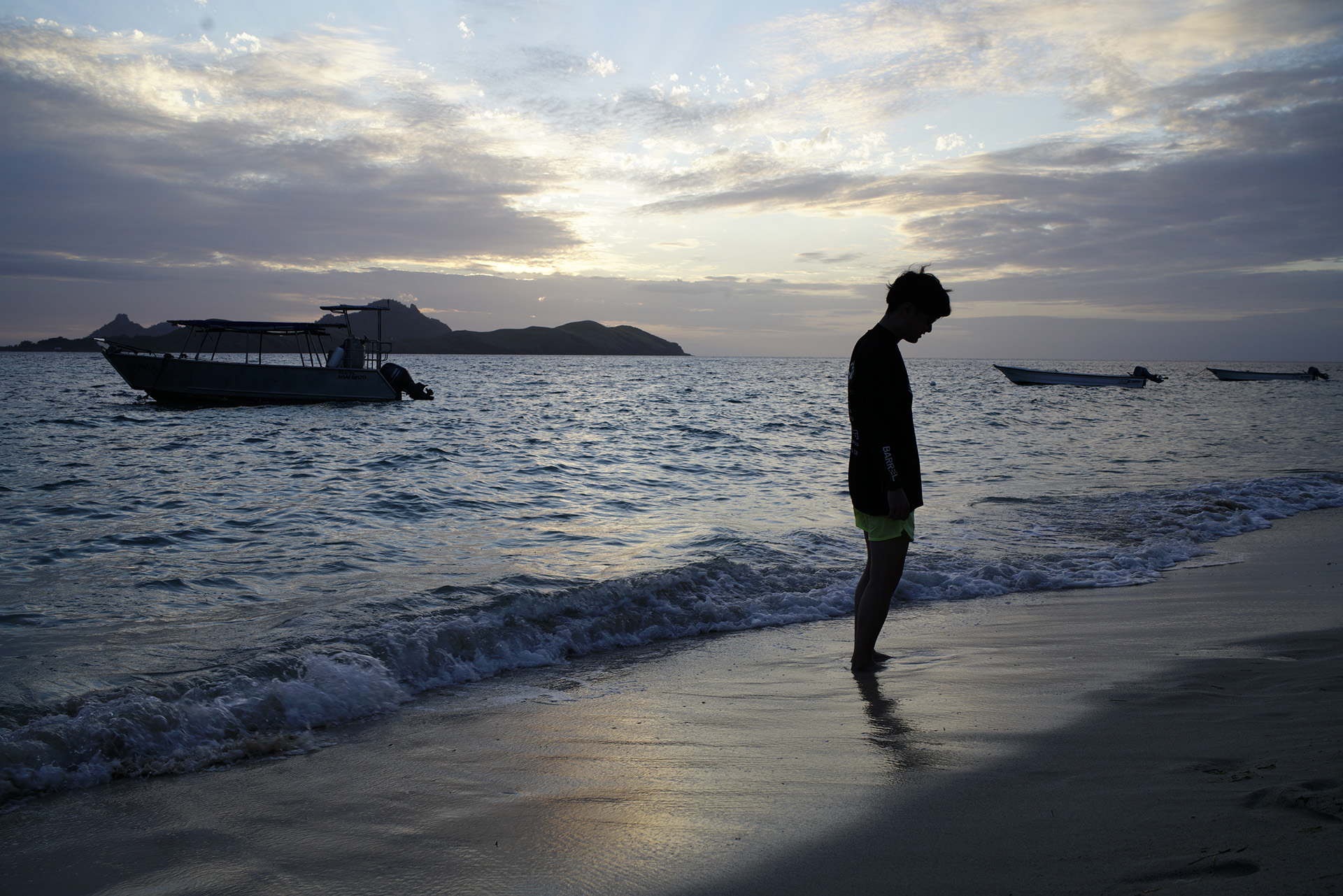 登船赴 Tokoriki。天风海涛,碧波万顷。立于船头,海平面从左舷延伸到右舷,划出一道从容的弧线,如张巨弓,让人产生了一种海也有边界的错觉,恍若某个酒店天台上的巨大泳池。几座小岛,或远或近,或小或大,随性地散落在海面上。大岛山峦迭起,小岛不过是一片小小的椰林,树影中露出几片遮阳伞,或沙洲上摆了几张躺椅而已。
