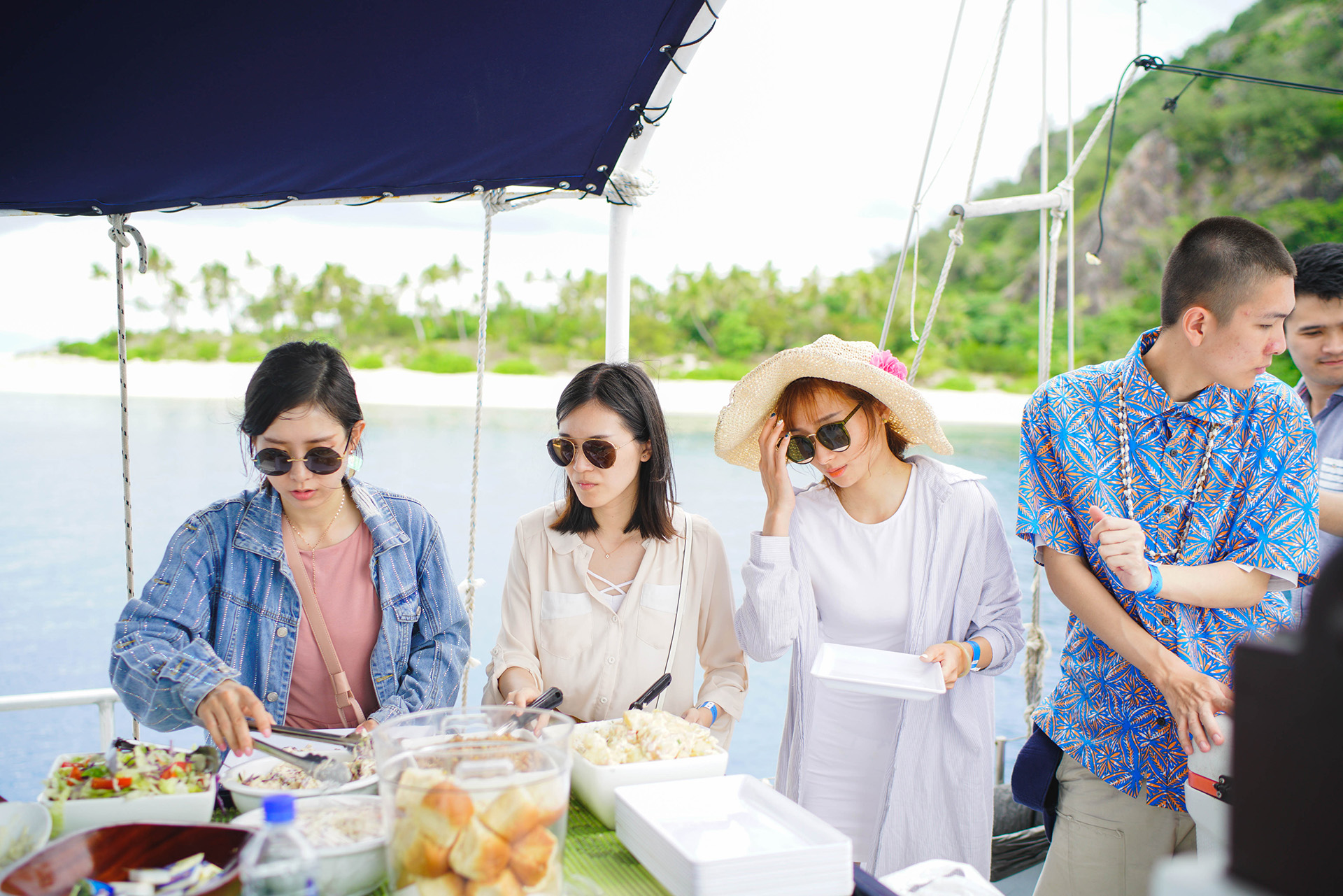 饭后亦买一舟,每小时才二十五斐济元,价格很便宜。开始想着绕岛而行,工作人员说不行不行,只能在海面上有浮标的安全范围内玩。