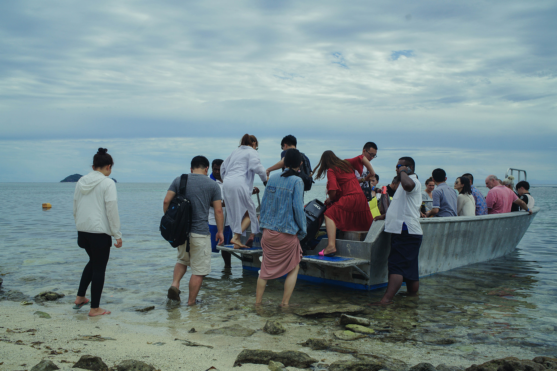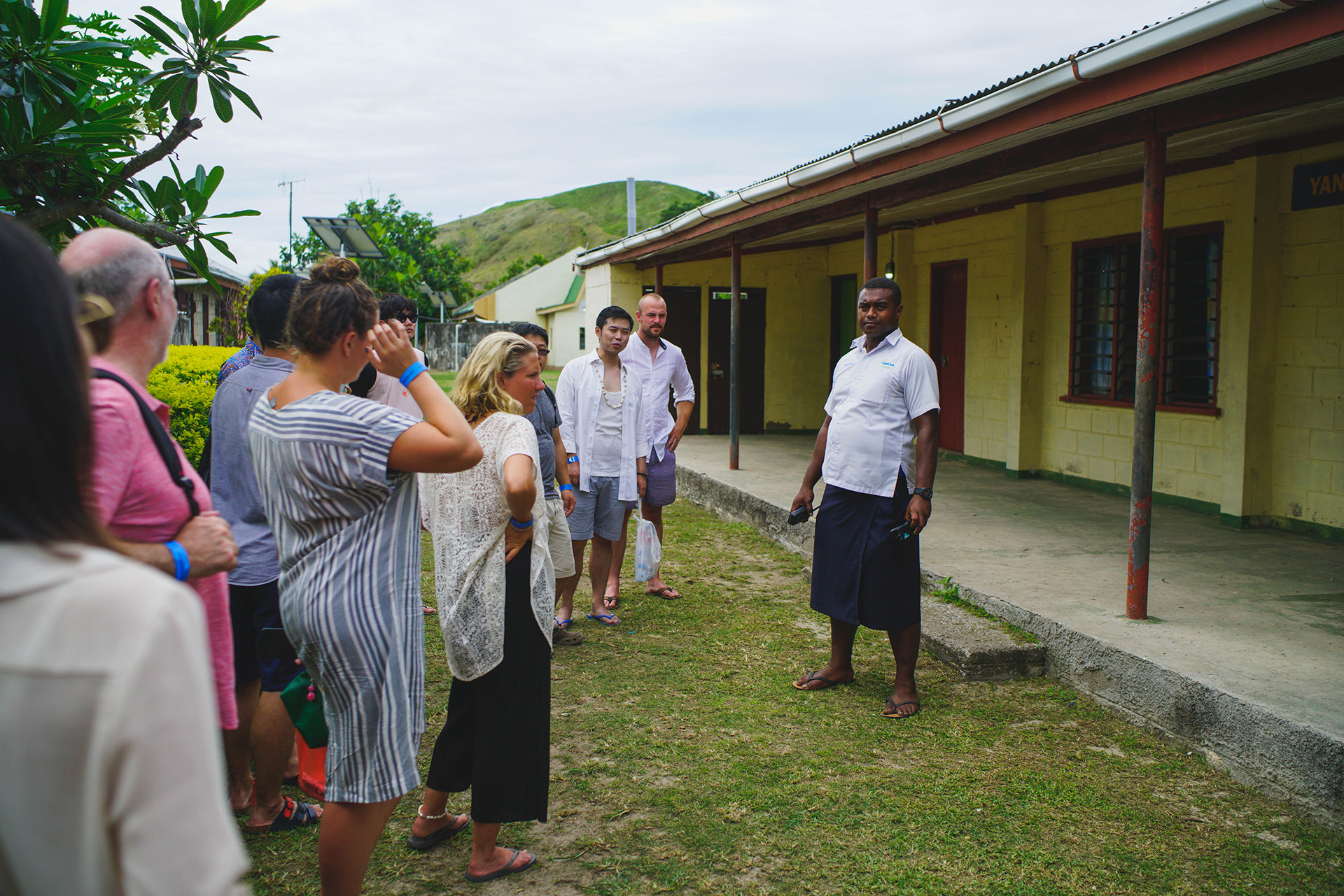 到达 Yanuya 岛上的原住民村落,差不多是中午一点。出发前,导游跟我们交代岛上的避讳事项:游客需免冠,因为只有酋长能戴帽子;女士不能露肩及膝以上。所以在我们想象中,这应该是一个原始荒蛮的旧部落形象。