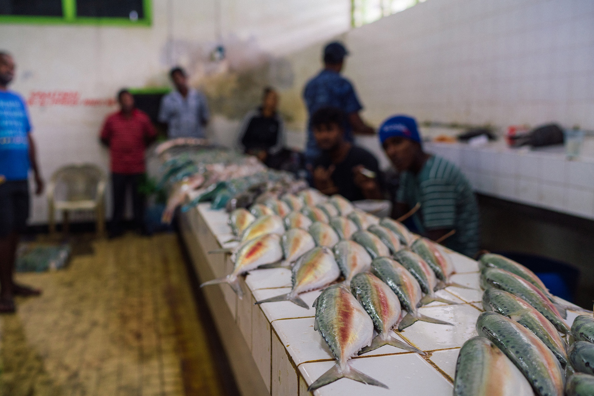 市场内所售,蔬果鱼肉皆有之,香辛料有之,箕帚日用亦有之。鱼鲜海产单独在一个房间内,内外设两重门,鱼腥隔绝,不出门外,国内很少见这种配置。推门进去,房间颇狭长,只有一排柜台,鱼都摆陈在案板上。这里不能蓄水养活鱼,是以腥味特重。