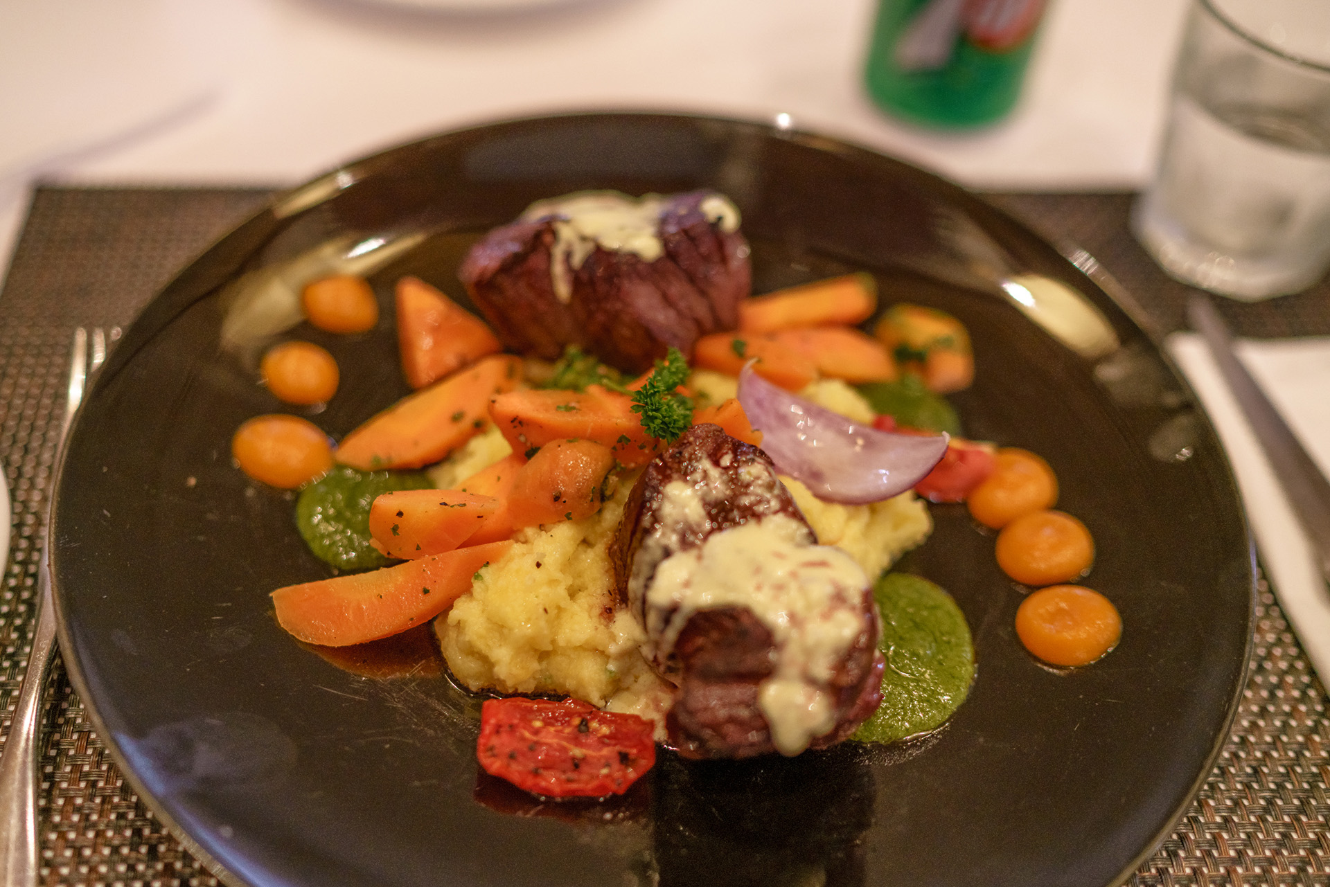 晚餐吃的是牛排,胡萝卜生脆鲜甜,好吃。