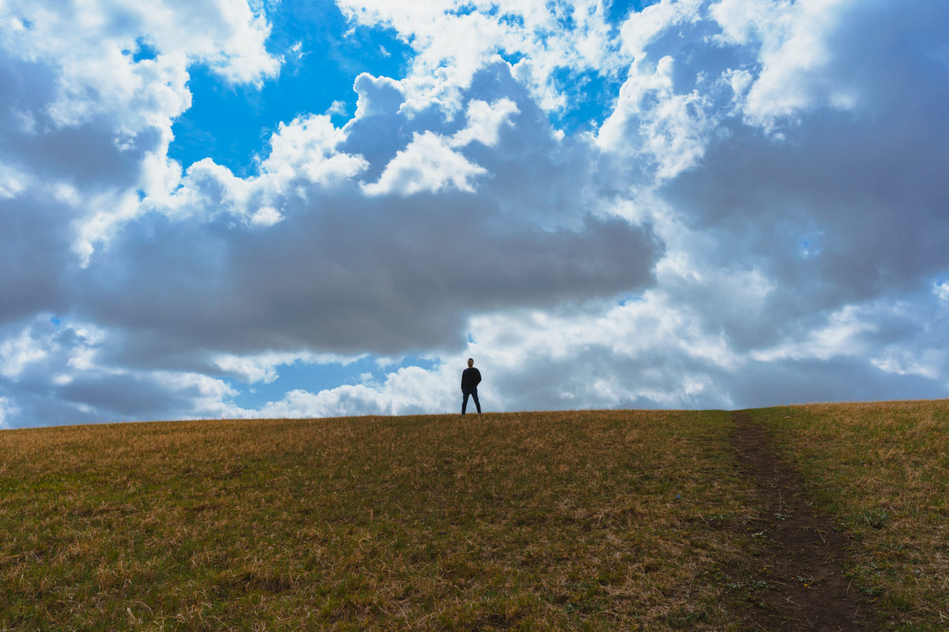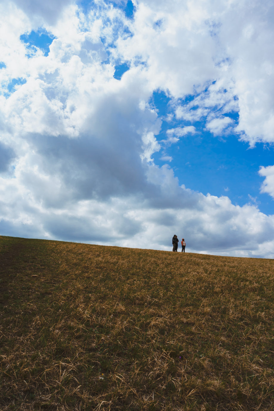 出白桦林,众曰未尽其兴,偶见路旁高坡,遂驱车登之,车不能复进矣,乃弃车攀援而上。及登其顶,四望无际,天高地阔,时见牛羊,夕阳垂地,云霞蔚然,亦何壮观。