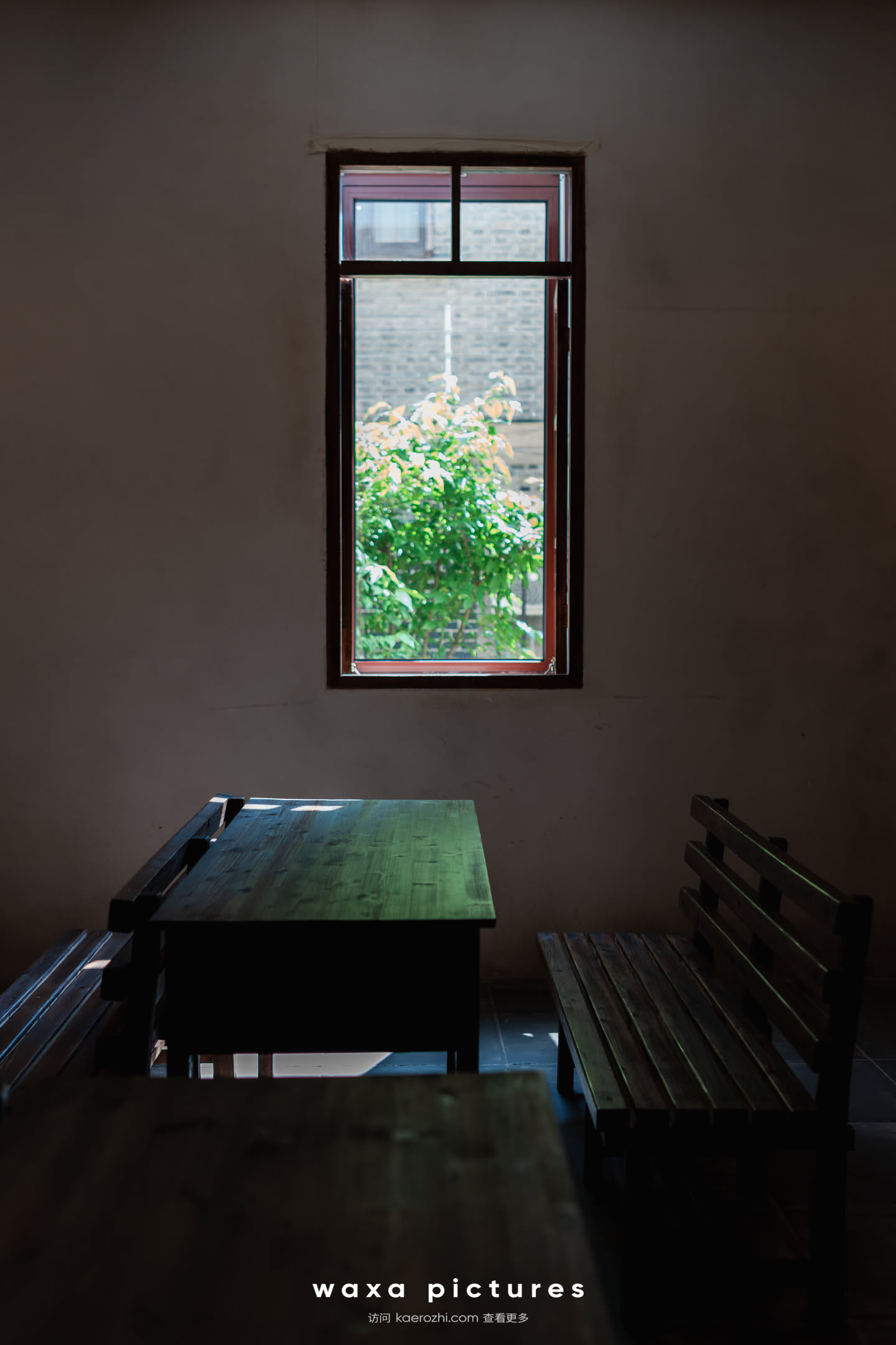 礼堂后面有一扇窗户,光线也很好,可作为画框入镜,坐立皆宜,但需要注意避开中间的横梁。