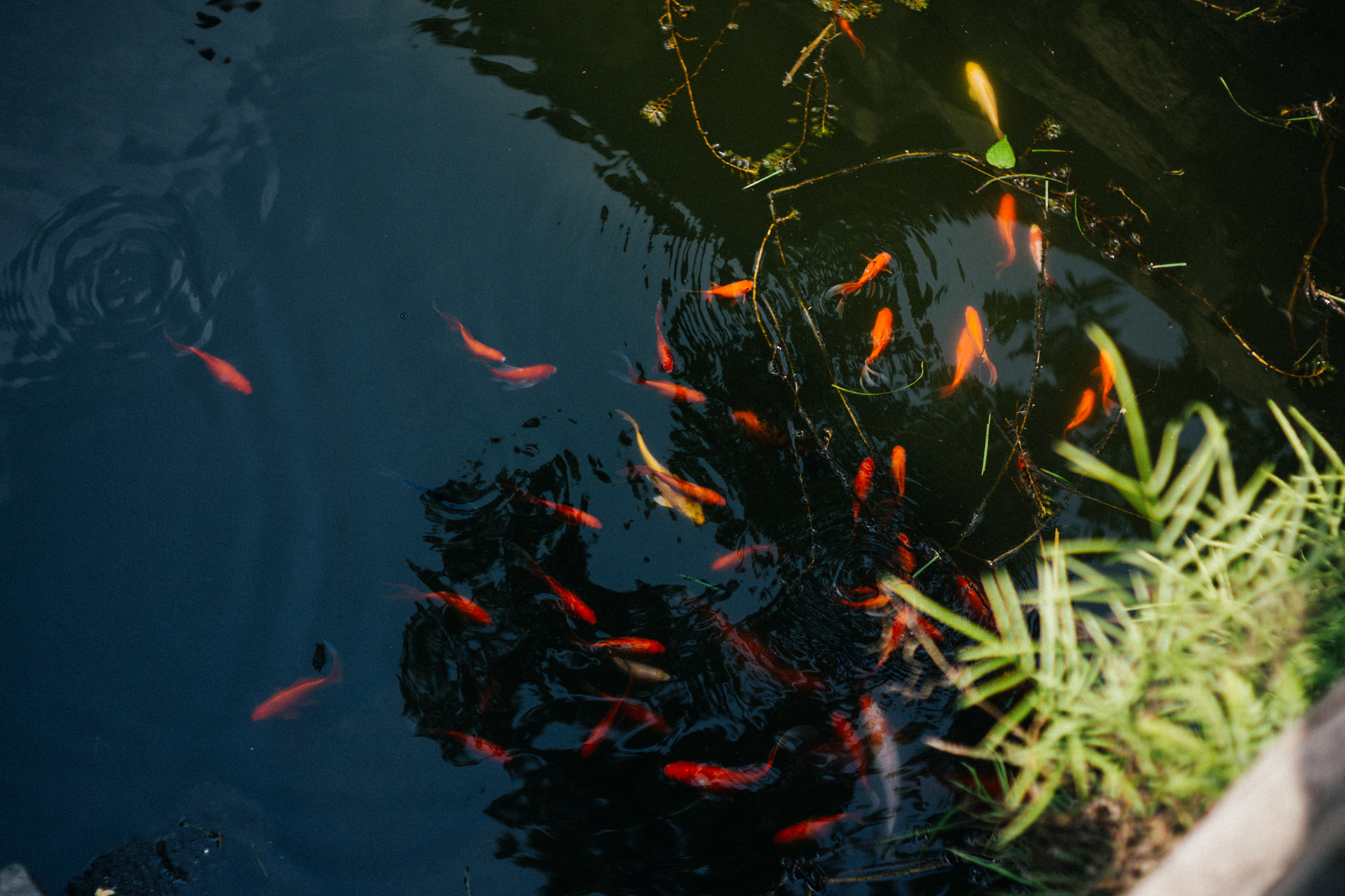 池中锦鲤可百许头,比前几天在耦园看到的多而且活泼。这些鱼也很爱聚众的样子,时东时西,总是抱团游走。