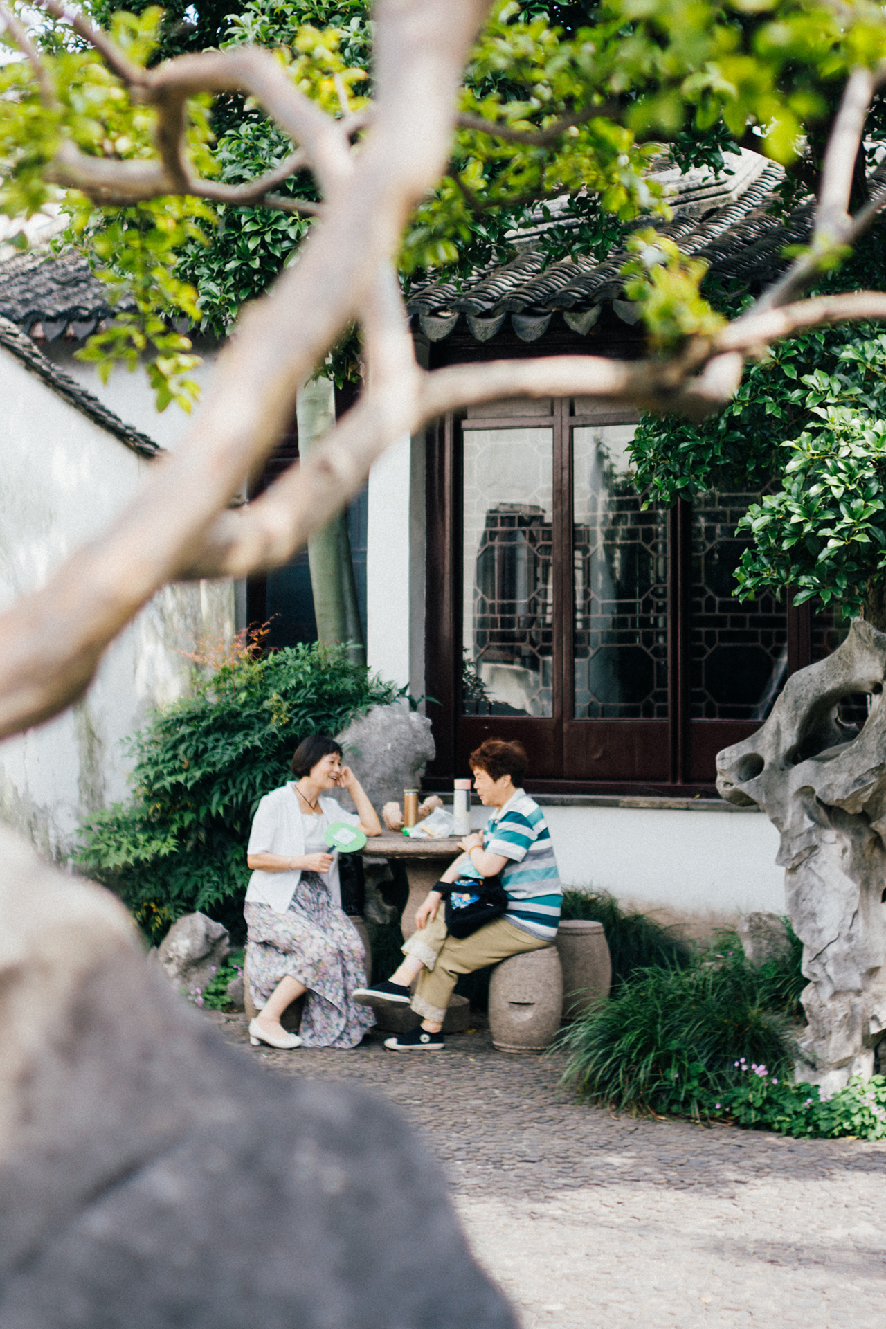 在苏州,曲园只是个不见经传的小园子,游客不多,又不收门票,虽然不像艺圃的延光阁一样每天茶客满座,后院亦尽有二三长者,或盘桓屋檐下,或逍遥水池边,从容闲坐,谈天品茗,于小小院落之中各占浮生半日闲,倒显得拍完照就走的我有些匆忙了。