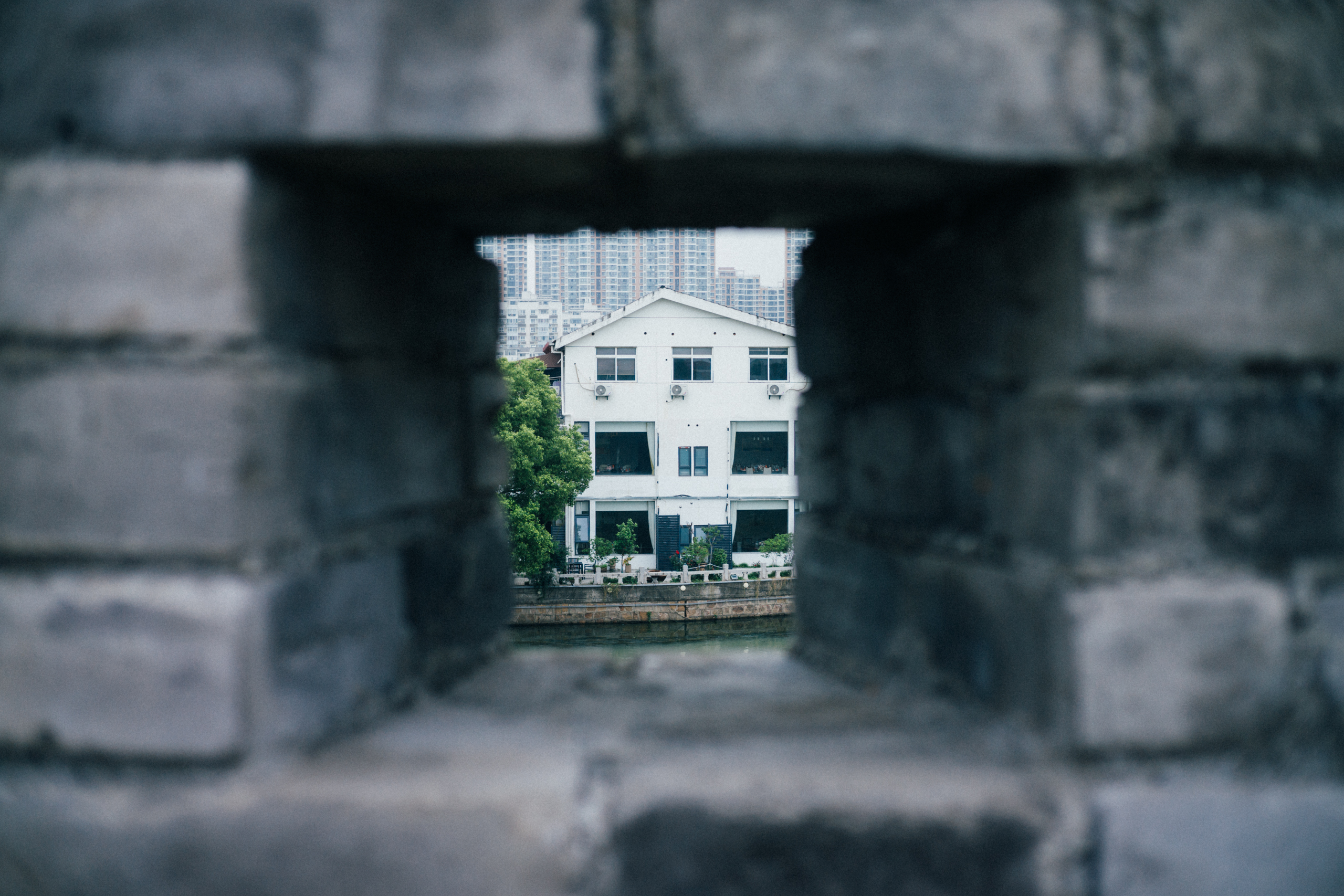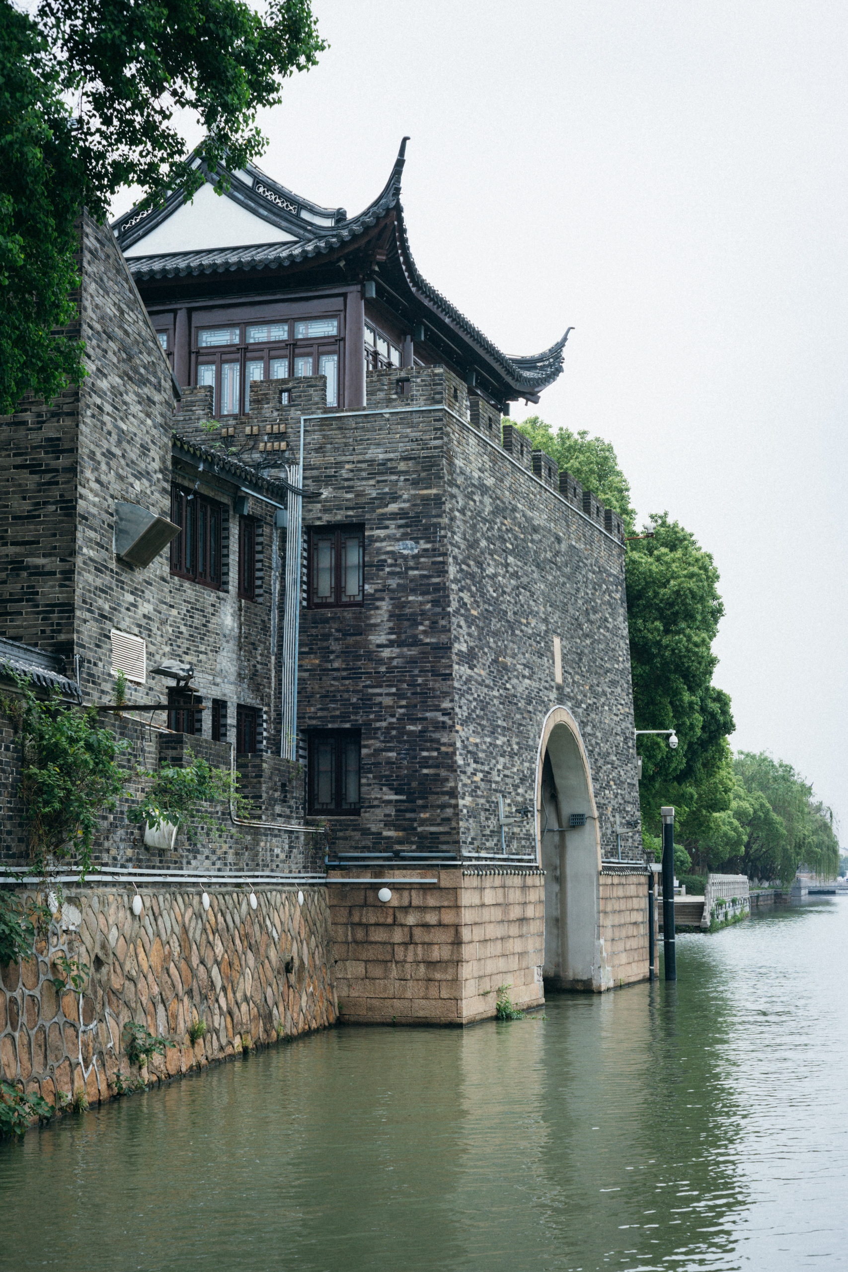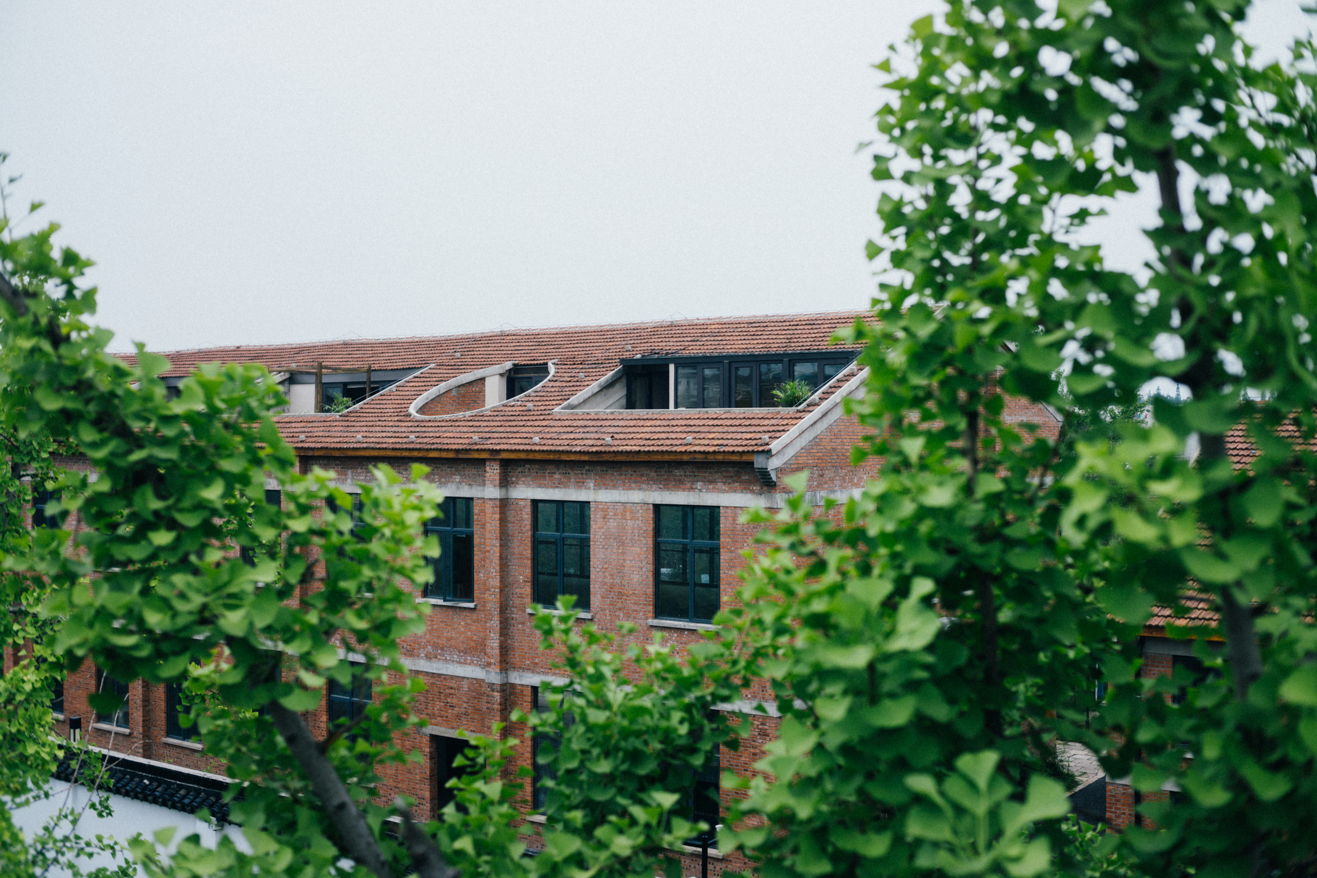 城墙内侧原本是工厂区,随着城区去工业化的滚滚大潮,生产线早已迁出,但改造进程似乎并不理想。其中一栋将原有的红砖墙依照苏州的式样,刷了白色,开了圆形漏窗,做成了酒店或者民宿,其他几栋似乎仍在空置。