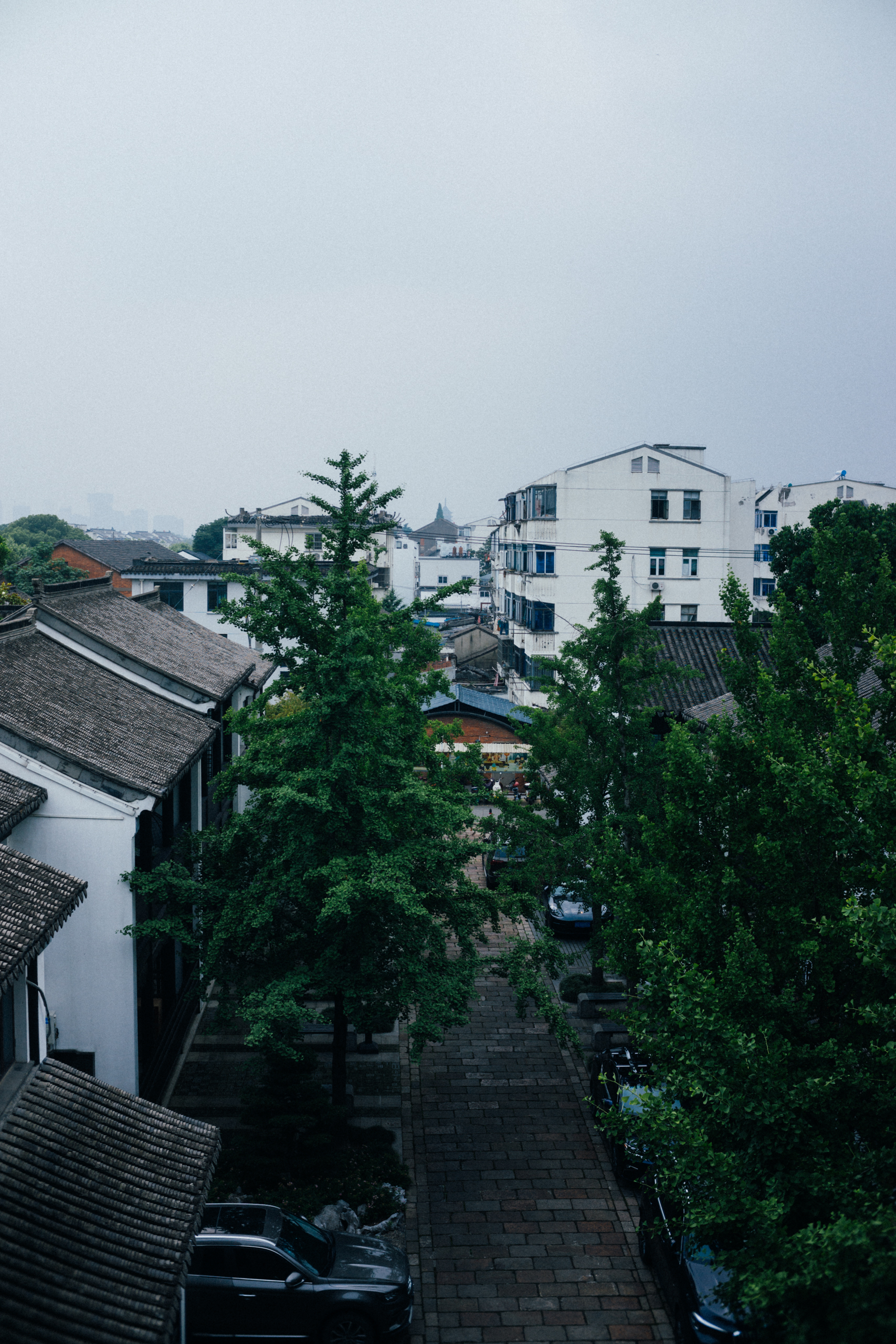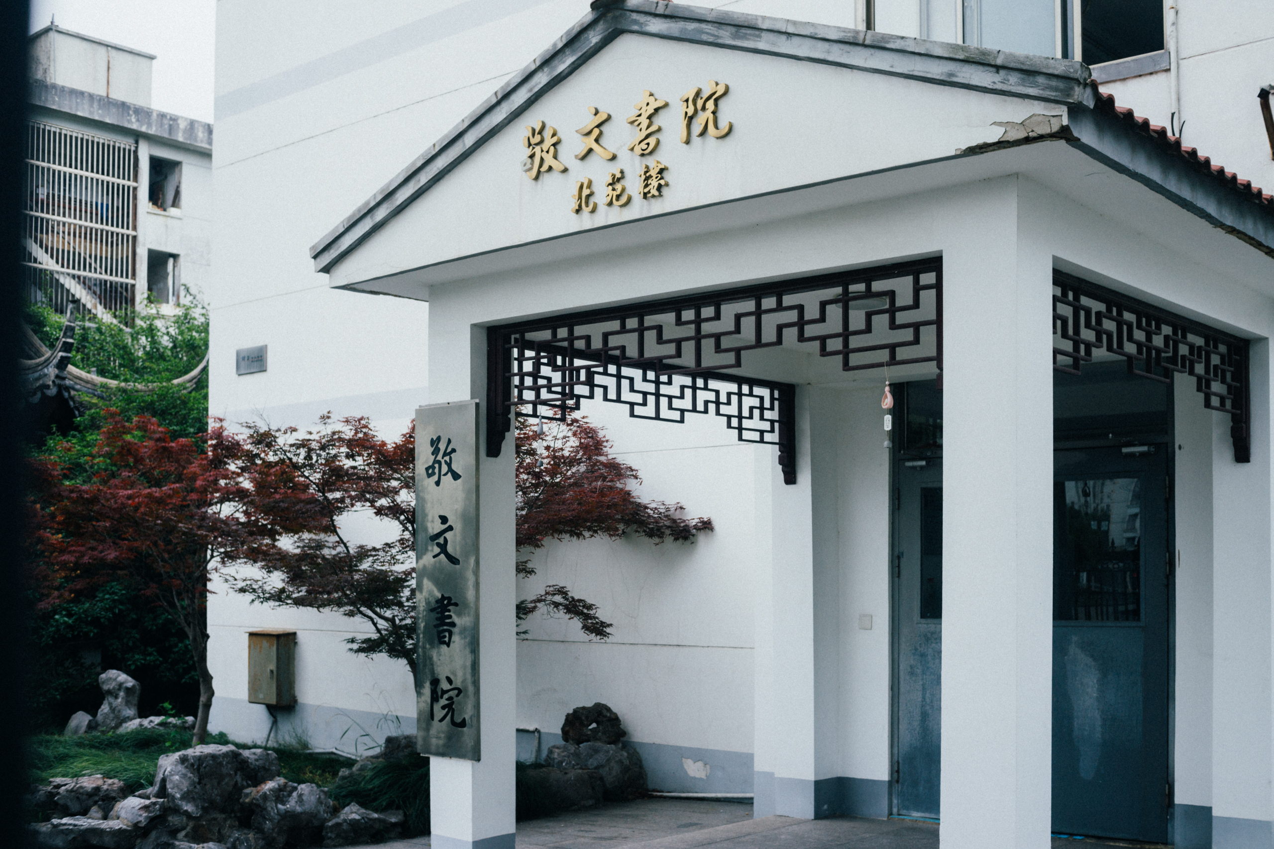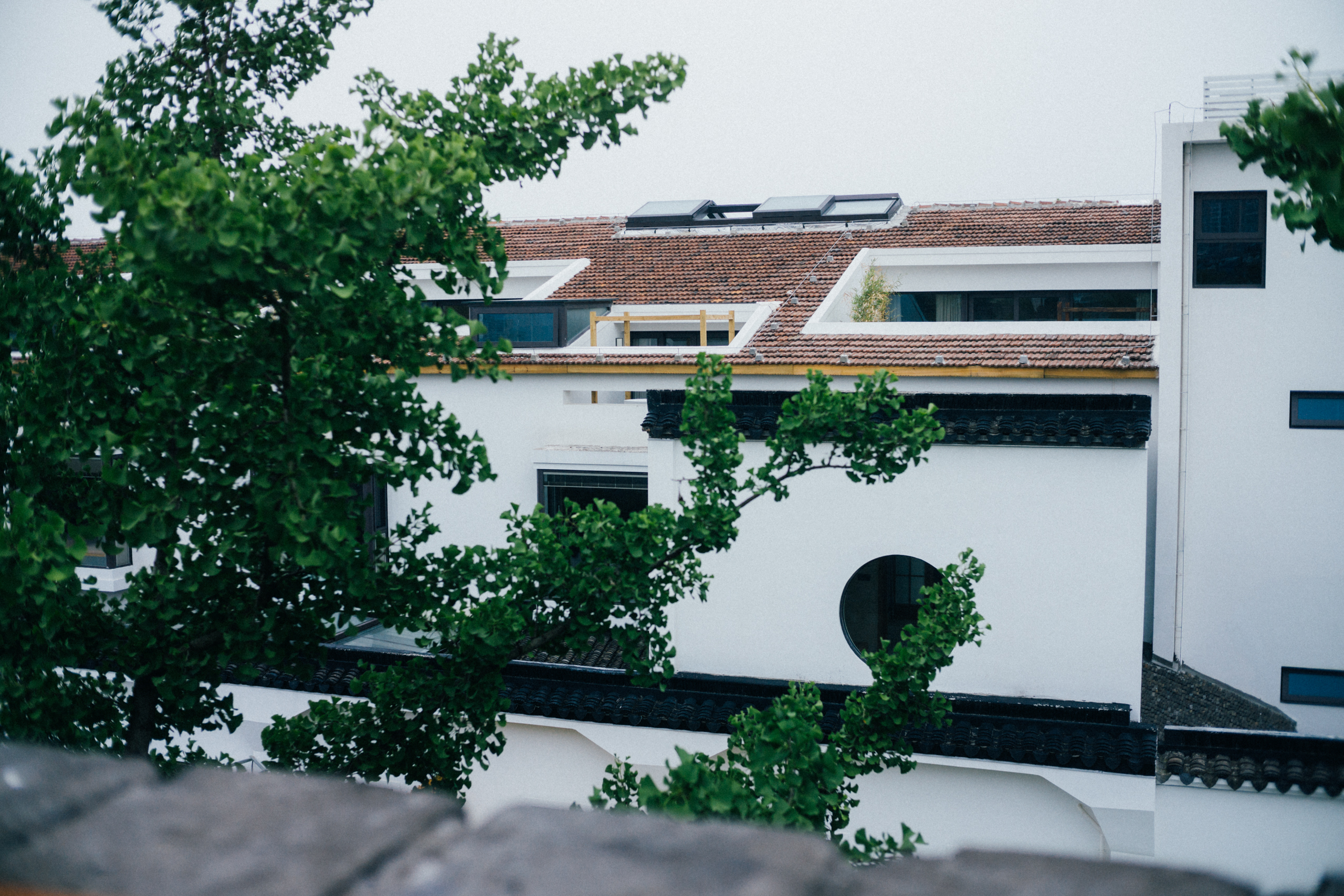 城墙内侧原本是工厂区,随着城区去工业化的滚滚大潮,生产线早已迁出,但改造进程似乎并不理想。其中一栋将原有的红砖墙依照苏州的式样,刷了白色,开了圆形漏窗,做成了酒店或者民宿,其他几栋似乎仍在空置。